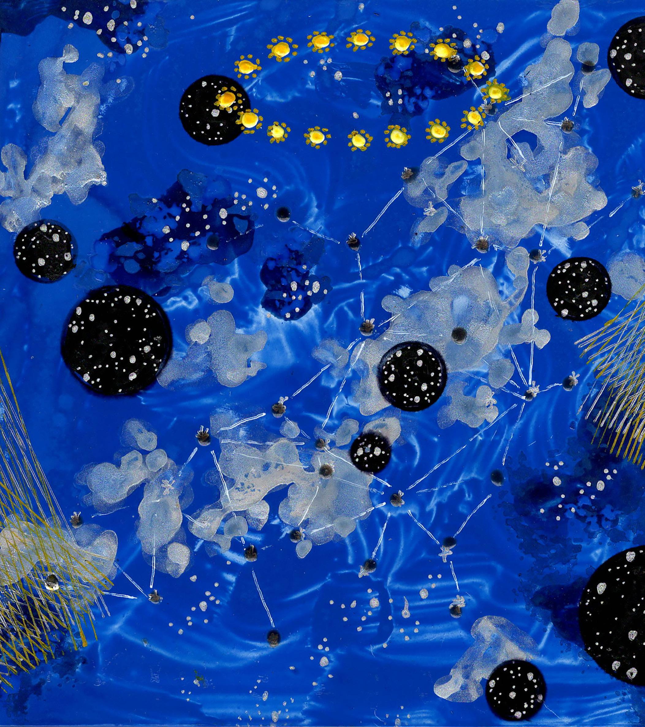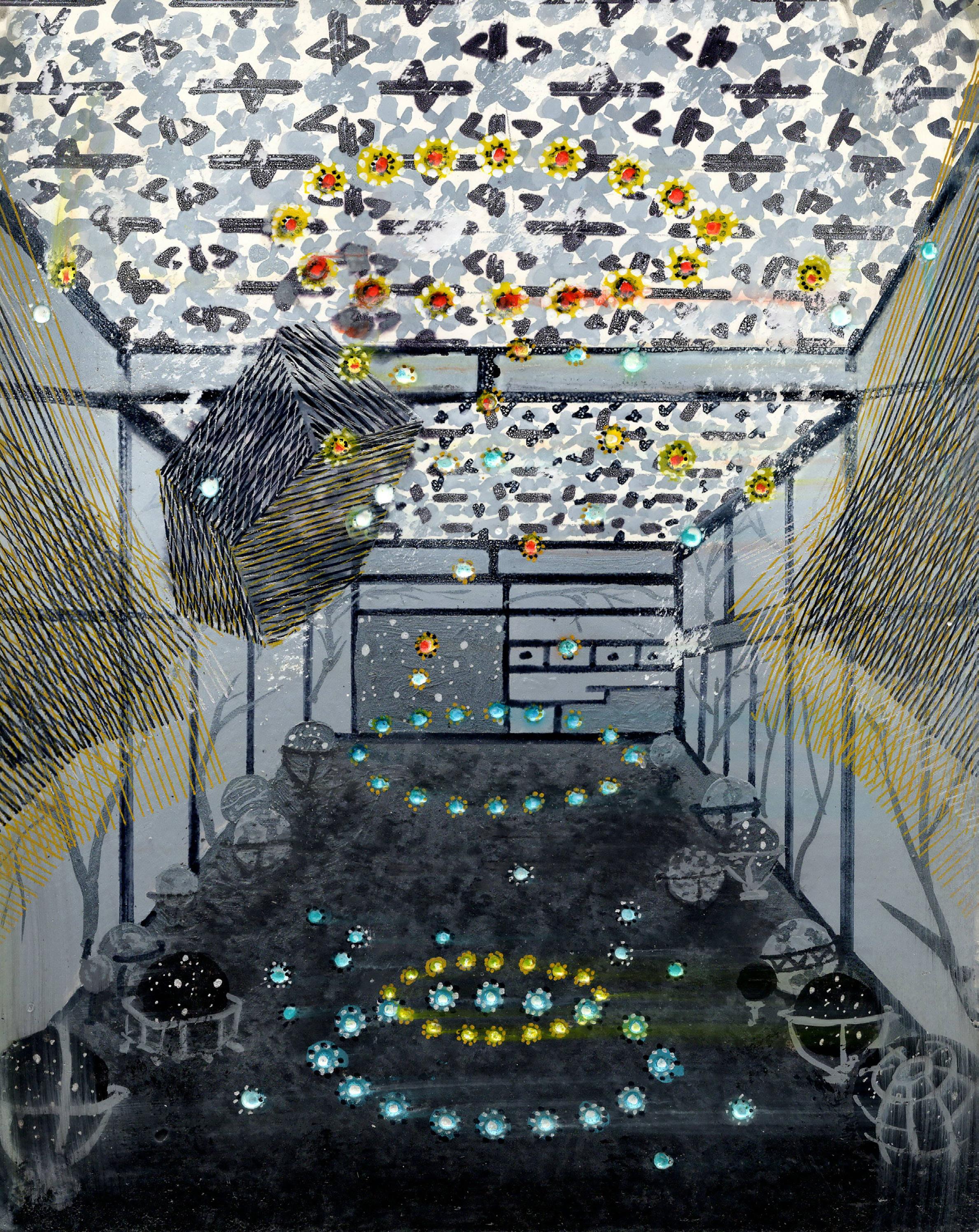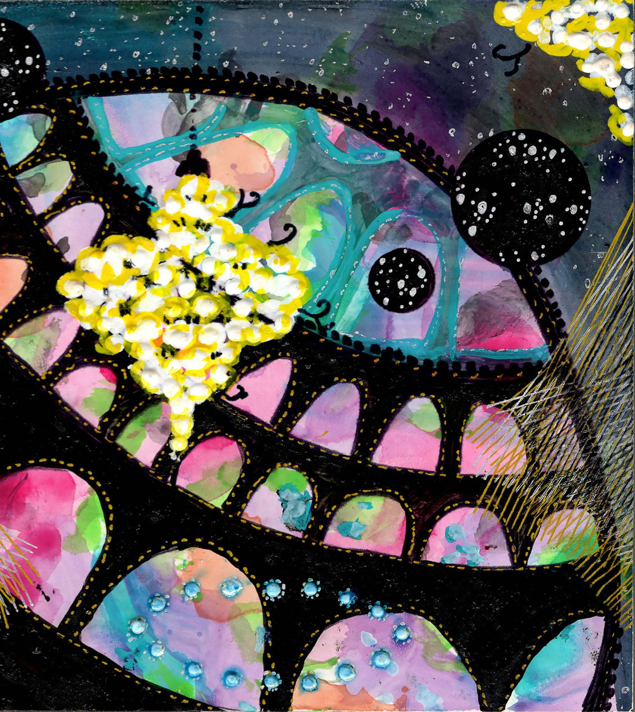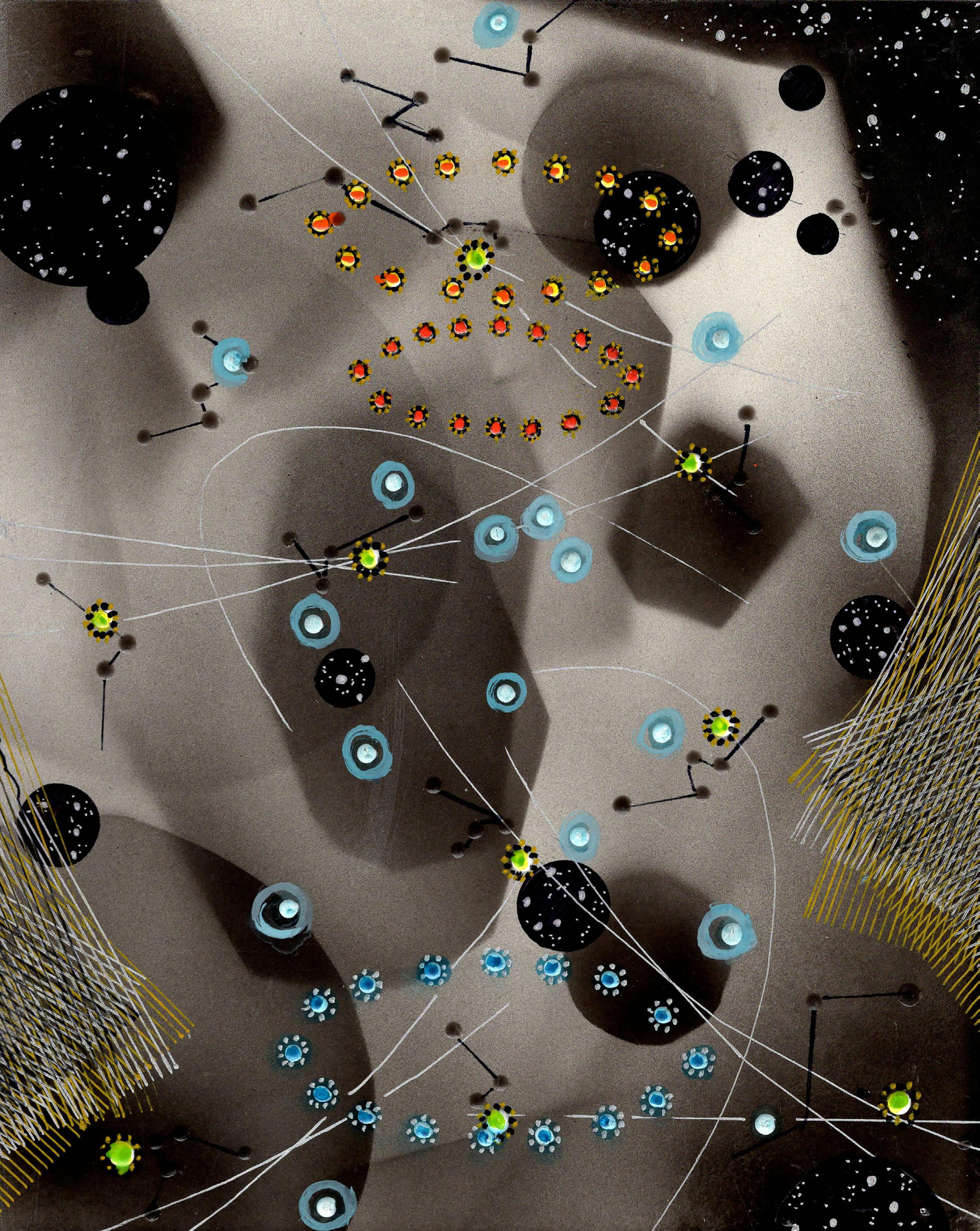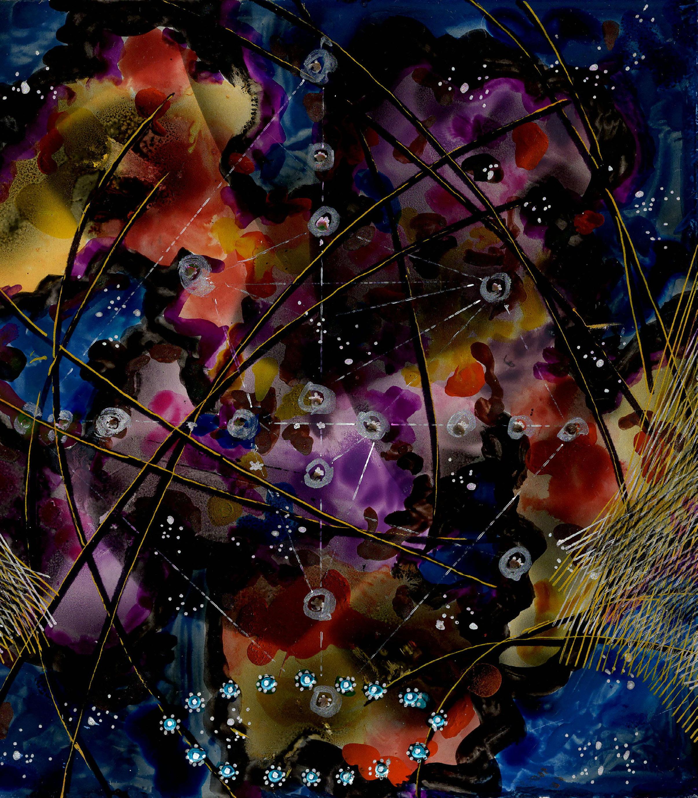 “Cosmic geometry” from Infinite Hope 22-K-48 Gouache, ink, and colored pencil on board