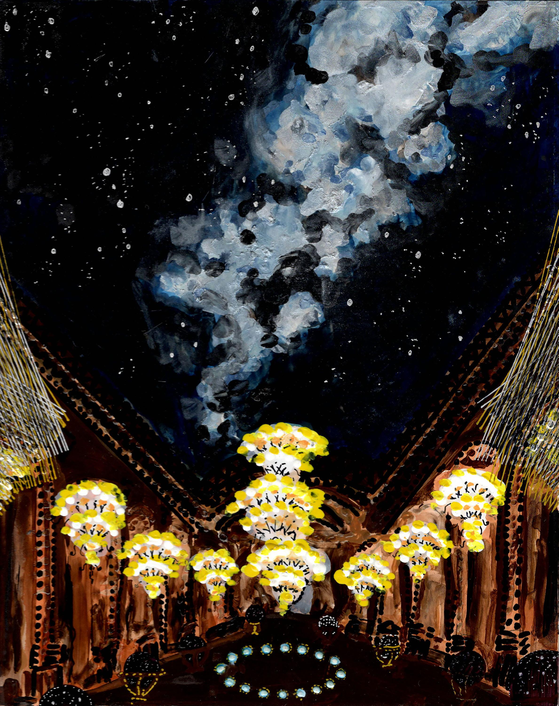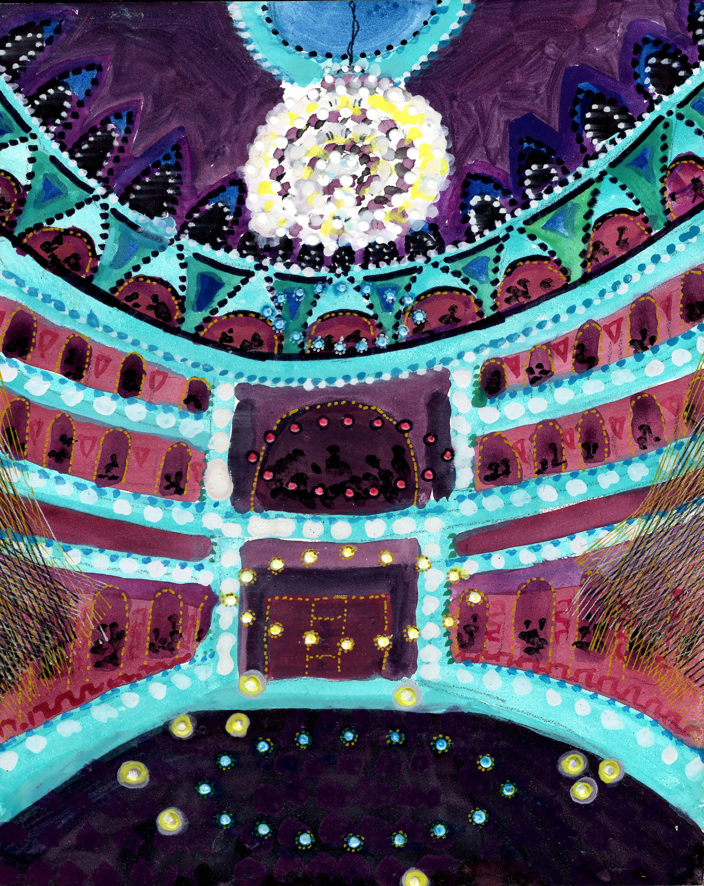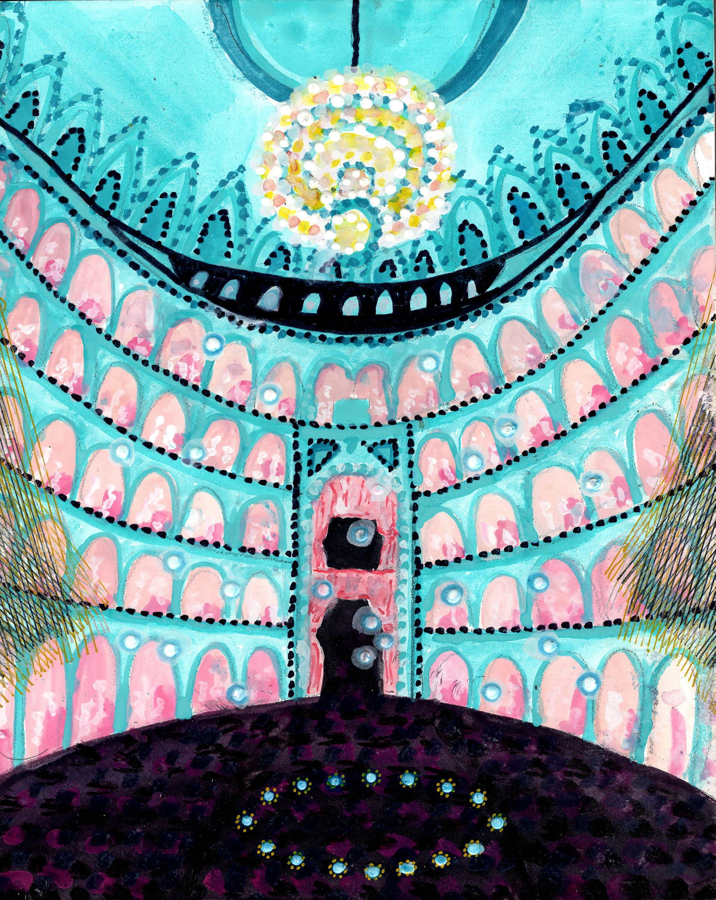 ”Silent Dome” from Cosmic Theater 25-K-60 Gouache, ink, and colored pencil on board