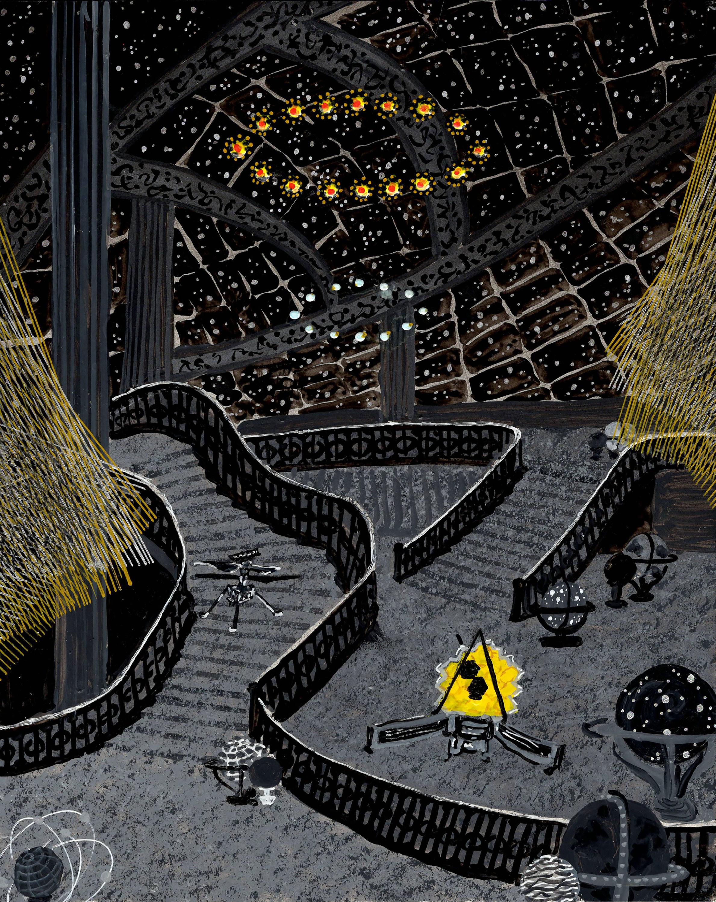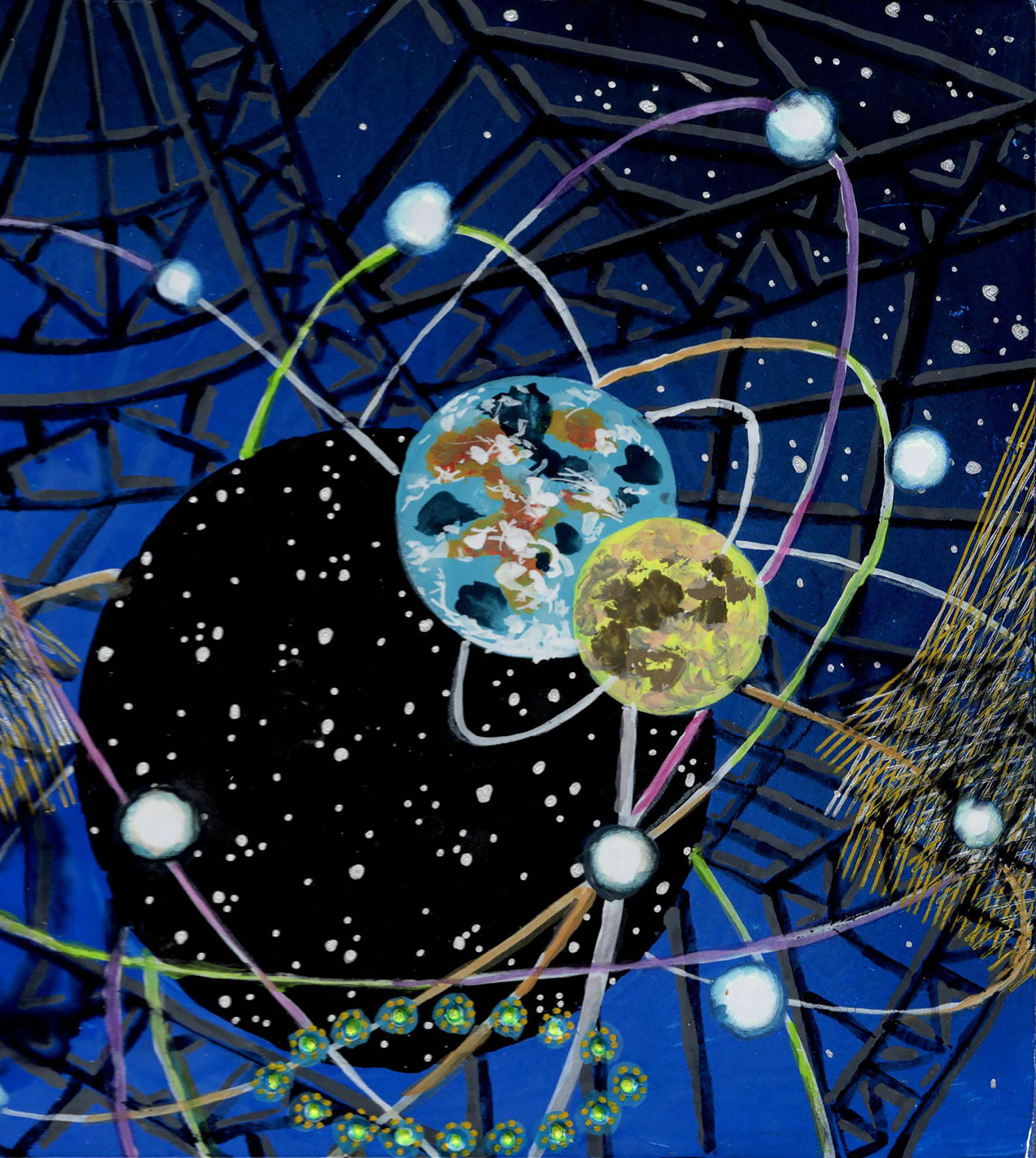 “Lagrangian point 2” from Infinite Hope 22-K-21 Gouache, ink, and colored pencil on board