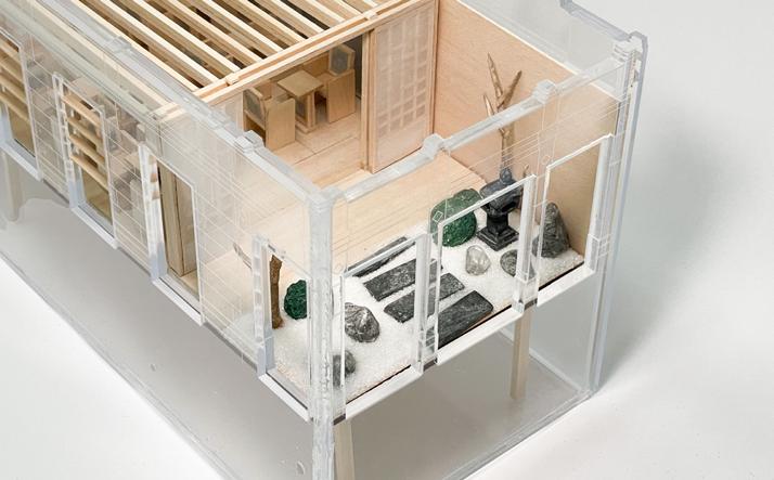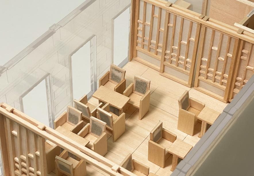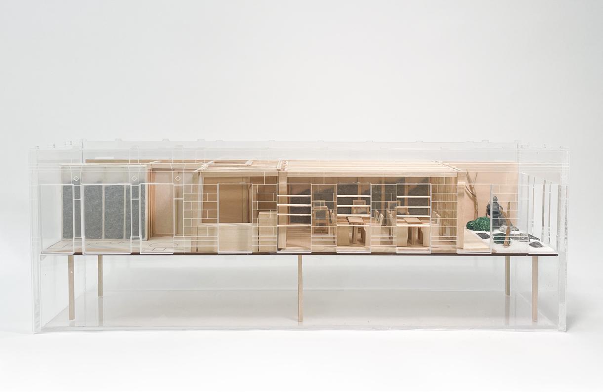 Wall Partition Model Built with Wood Rice Paper and Tea