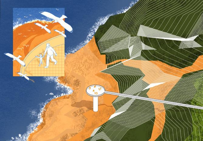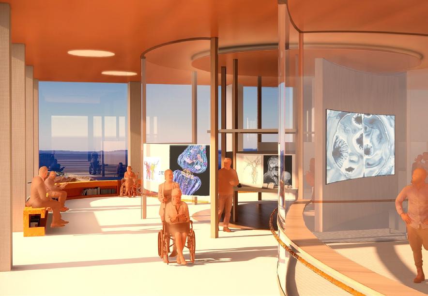 NeuroHorizon explores how movement stimulates brain development and strengthens neural pathways, using spatial design to enrich human interaction and cognitive awareness. By aligning interior rhythms with natural cycles—especially the path of the sun—the project creates environments that encourage the body to move intuitively and reconnect with the surrounding landscape.