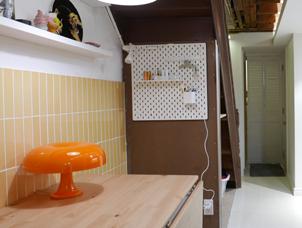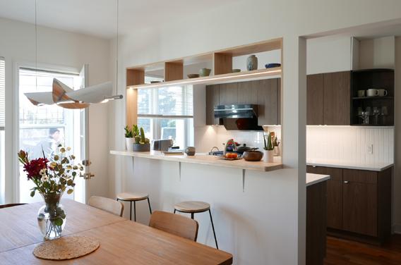 The understair area was opened up and rebuilt as a compact dining space for two to four people.