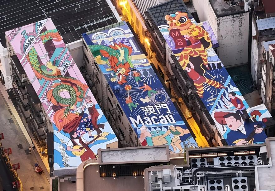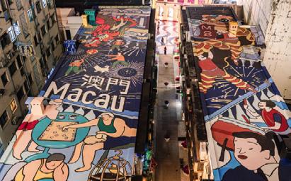 The Macau Rooftop Rejuvenation project brings new vitality to the city’s UNESCOlisted Historic Centre through murals that merge art, culture, and urban renewal. Drawing from azulejo-inspired geometry, auspicious Chinese cloud motifs, and maritime symbols rooted in Macau’s history as a port city, the designs honor the region’s blended heritage.