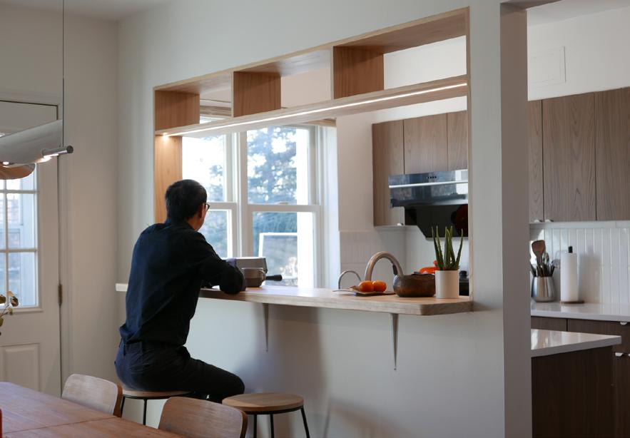 The closed kitchen is reconfigured into a half-open communal space that enhances light, connection, and daily living, while the basement is adapted into an independent suite with its own bathroom, kitchen, and studio-bedroom. Together, these interventions reinterpret the historical practicality of the neighborhood’s mid-century housing for modern patterns of openness, autonomy, and multigenerational living. The project began in June, construction started in July, and was completed in December.