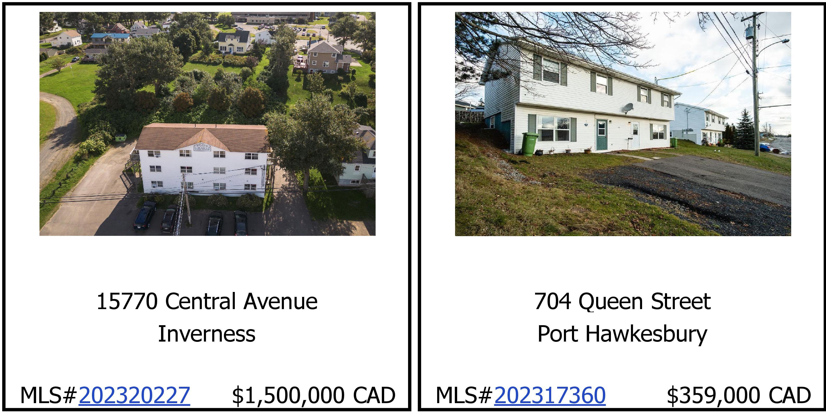MLS# CAD Sq ft Bath Bedroom $899,900 7914 East Bay Highway 202323019 2,785 3 4 Big Pond MLS# CAD Sq ft Bath Bedroom $799,500 121 Cheticamp Island Road 202321406 1,770 3 4 Point Cross MLS# CAD Sq ft Bath Bedroom $789,000 55 High Road 202317717 1,325 4 7 Port Hood MLS# CAD Sq ft Bath Bedroom $755,000 19 Spruce Street 202324893 1,613 2 3 Port Hawkesbury MLS# CAD Sq ft Bath Bedroom $755,000 3 Spruce Street 202324894 1,613 2 3 Port Hawkesbury MLS# CAD Sq ft Bath Bedroom $720,000 559 Marble Hill Road 202401223 1,275 3 2 Port Hood MLS# CAD Sq ft Bath Bedroom $675,000 43 Embree Island Road 202400877 1,053 3 3 Port Hawkesbury MLS# CAD Sq ft Bath Bedroom $655,000 8 Spruce St 202324892 1,509 2 3 Port Hawkesbury MLS# CAD Sq ft Bath Bedroom $652,000 110 De Raymond Street 202323837 2,784 2 3 St. Peter's MLS# CAD Sq ft Bath Bedroom $599,900 15661 Cabot Trail 202313808 848 2 3 Chéticamp MLS# CAD Sq ft Bath Bedroom $590,000 5 Spruce St 202324890 1,253 2 6 Port Hawkesbury MLS# CAD Sq ft Bath Bedroom $589,000 45 Embree Island Road 202316955 1,311 3 3 Port Hawkesbury 877-535-2485 We're Local, We're Global