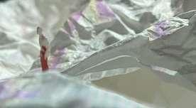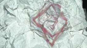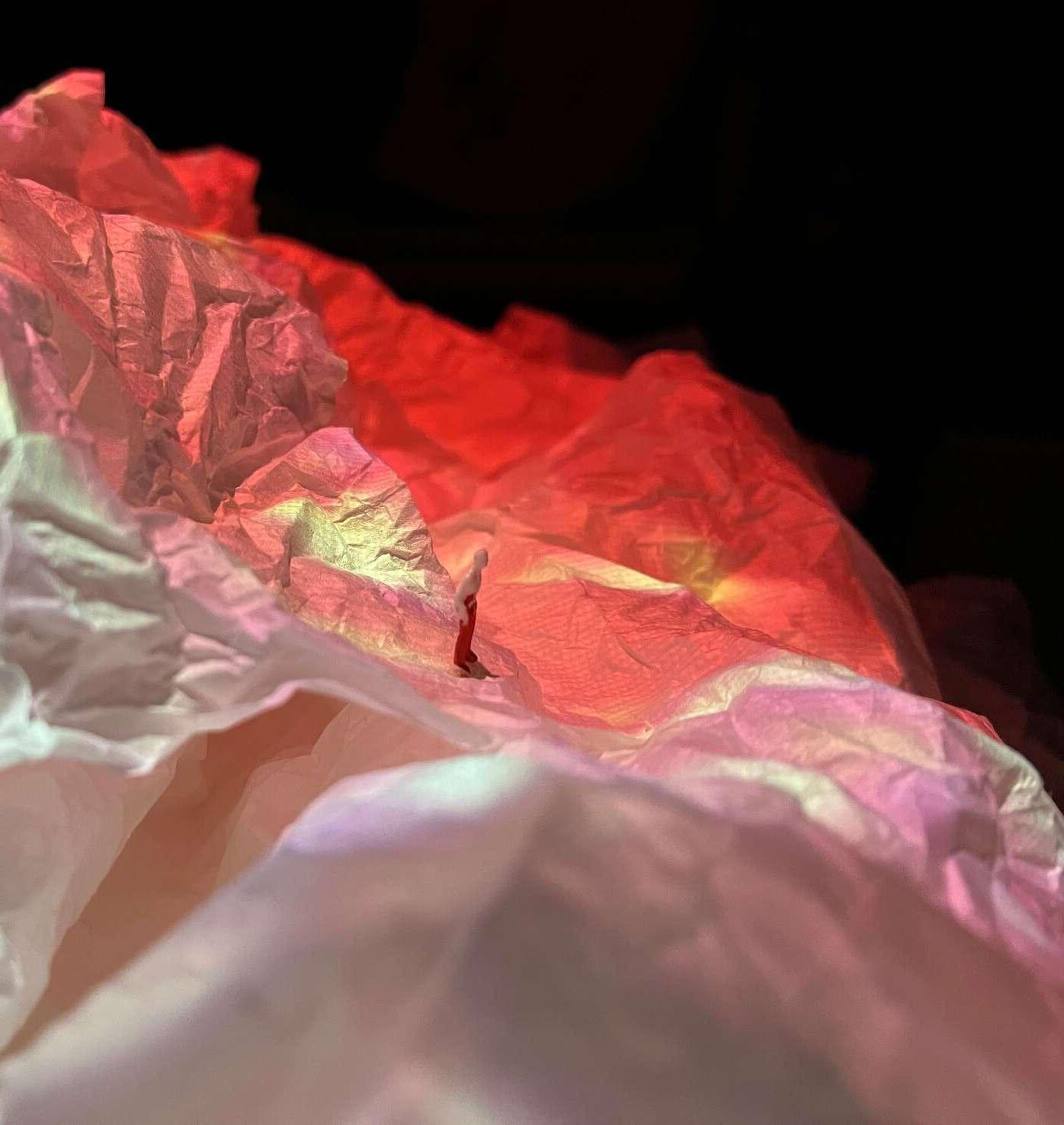 Fabric wraps around the small-scale artworks and the positions are various. Visitors need to adjust their viewpoint to appreciate the objects.
