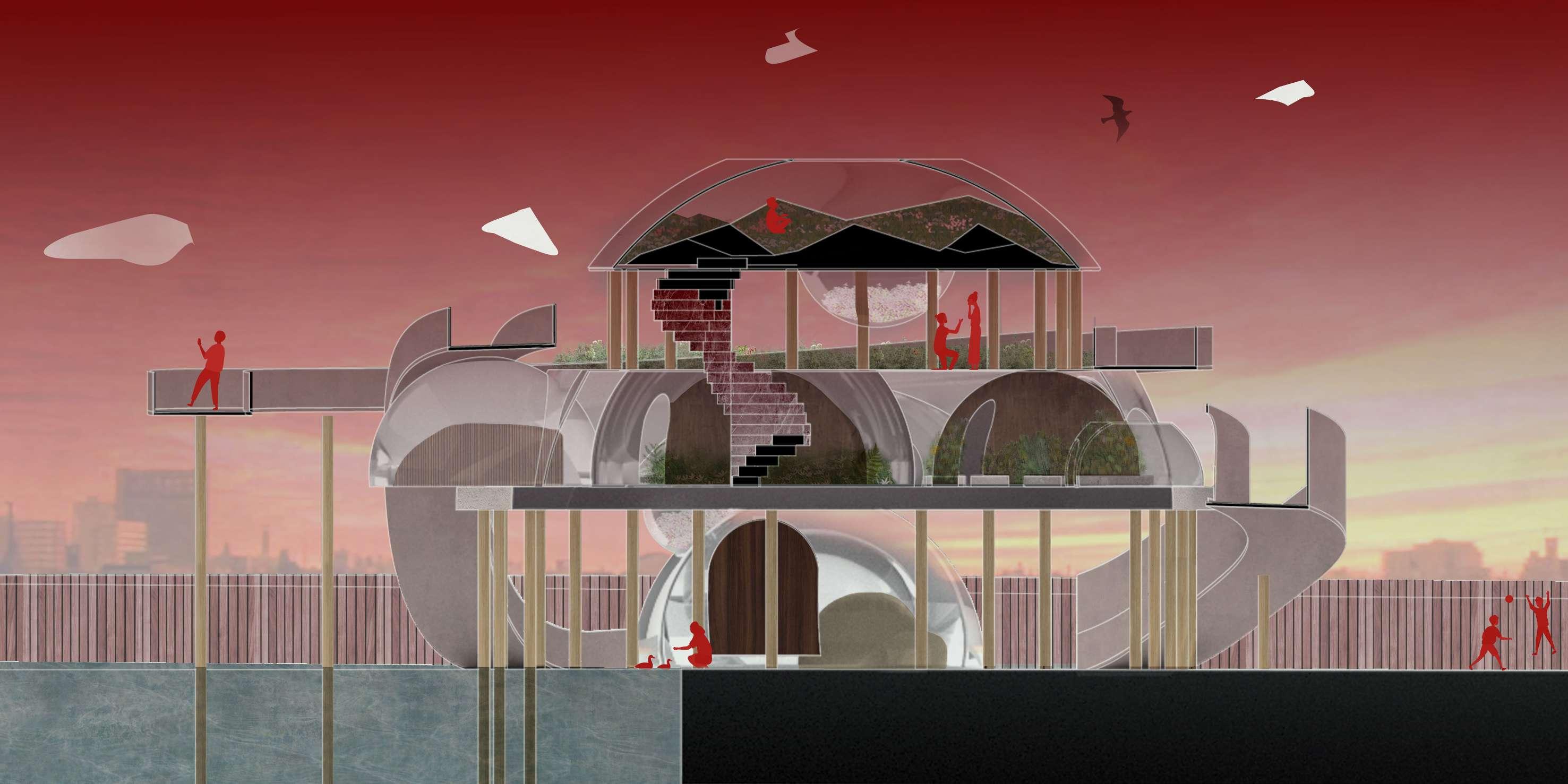 Aurora provides affordable, flexible housing solutions tailored to urban millennials facing financial barriers to homeownership. Aurora utilises 3D printing technology to provide adaptable, modular living spaces that meet individual needs and preferences. Its dynamic design facilitates easy expansion or downsizing in response to the changing lifestyles of its occupants. This novel housing concept seeks to rethink the way we design, build and assemble homes, ultimately improving the quality of urban living.