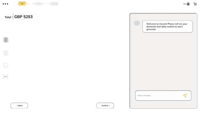 The user describes their needs the platform converts natural Language into different levels of needs and thus generation Aurora. After that we provide different kinds of furniture and items for the user to choose from.