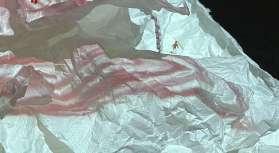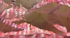 The fabric hung up to form a fabric wall that blocks the visitor's way. One needs to control the position of the fabric to find the exit.