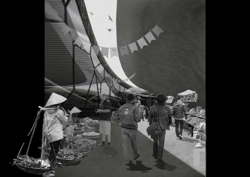 The big nodes are mainly used as symbolic spiritual places for villagers to socialize and communicate. Large-scale public places such as upper-level social activities and fairs are set up at large points. There are tubes and transit places for traffic inside.