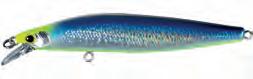 EXSENCE Strong Assassin 125 tiene una acción más agresiva que su hermano ‘Silent Assassin’. Disponible en opciones de otación ( oating) y hundimiento (sinking), cuenta con FLASH BOOST, JET BOOST y SCALE BOOST con una amplia acción de bamboleo cuando se recoge a una velocidad constante, o con potentes deslizamientos erráticos al hacer los jerks. Si quiere un señuelo agresivo para la lubina, el EXSENCE Strong Assassin 125 debería ser el primero de su lista. Disponible en versión flotante (F) y hundida (S), este Bass hunter de 125mm de longitud cuenta con JET BOOST para aumentar el rendimiento del lance hasta los 65m, lo que lo hace perfecto cuando los peces se alimentan a distancia. FLASH BOOST aumenta la atracción al reflejar la luz, incluso cuando está inmóvil, y el tejido de SCALE BOOST apela a los instintos depredadores de la vista superior de Bass. Utilizando una recogida constante y regular, el Strong Assassin tiene una amplia acción de bamboleo, pero se puede añadir una acción agresiva utilizando jerks bruscos, o una acción de deslizamiento utilizando tirones largos de la puntera de la caña. La versión flotante se sumerge hasta 0.70m y la versión hundida (sinking) es fantástica para pescar los peces que se alimentan a mayor profundidad.