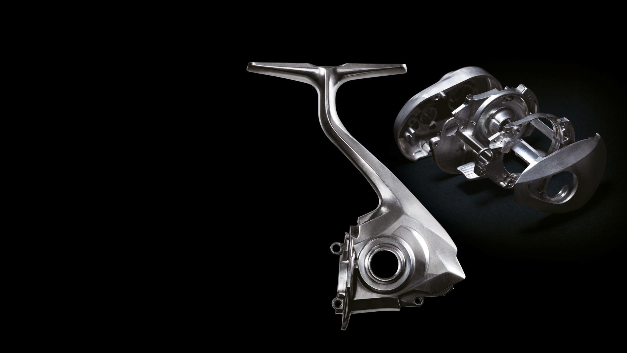 Shimano utiliza magnesio para ciertos carretes de altísima calidad donde ahorrar peso es vital. El uso de magnesio reduce el peso hasta un 10% en comparación con el uso de aluminio, ofreciendo la misma fuerza y rigidez.