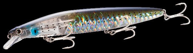El sistema Flash Boost patentado por Shimano consiste en un espejo pivotante suspendido en resortes dentro del cuerpo del señuelo, el cual, toma la luz y emite constantes destellos luminosos, logrando asi un efecto atracción irresistible para los peces cazadores.