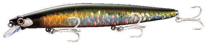Al momento de ingresar al agua, el peso interno vuelve a su posición habitual en la parte delantera del señuelo para lograr un nado perfecto.