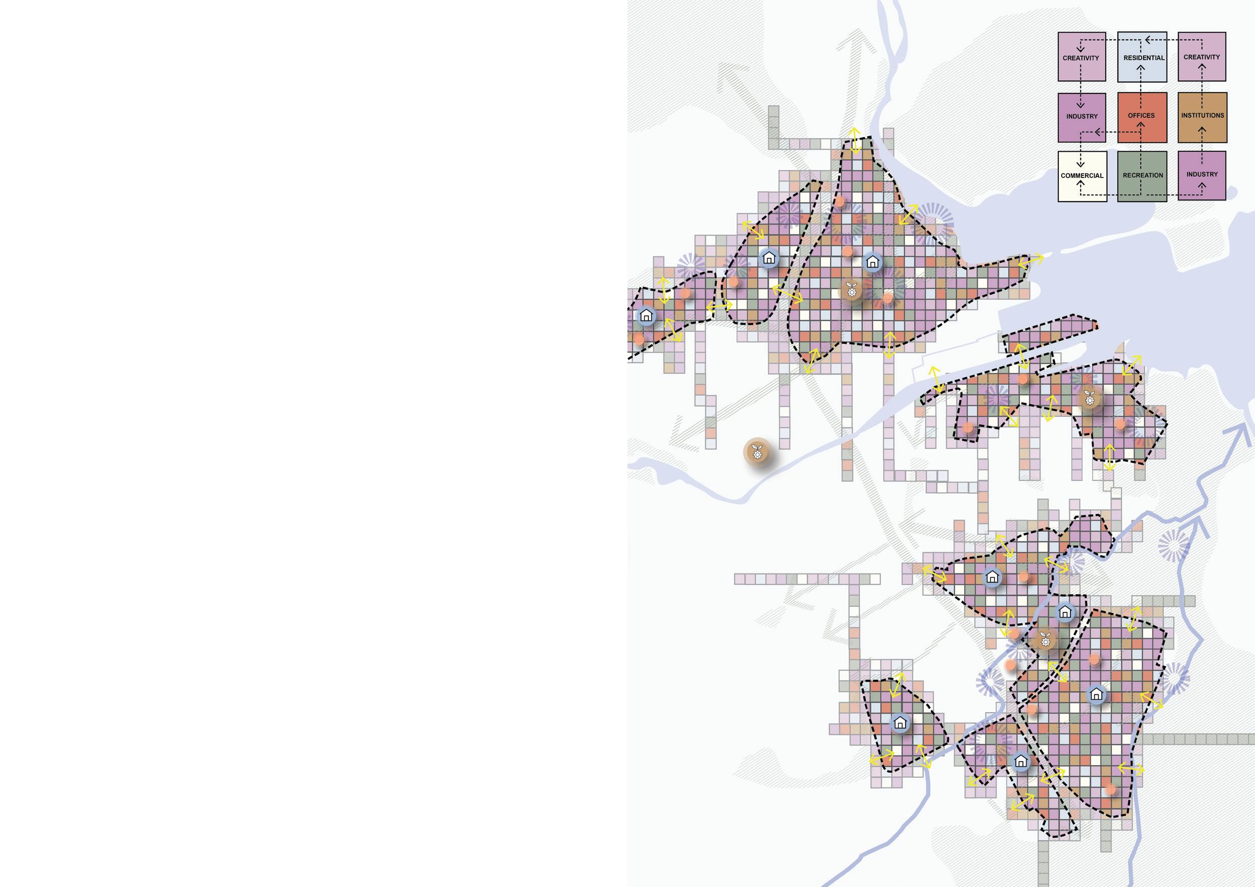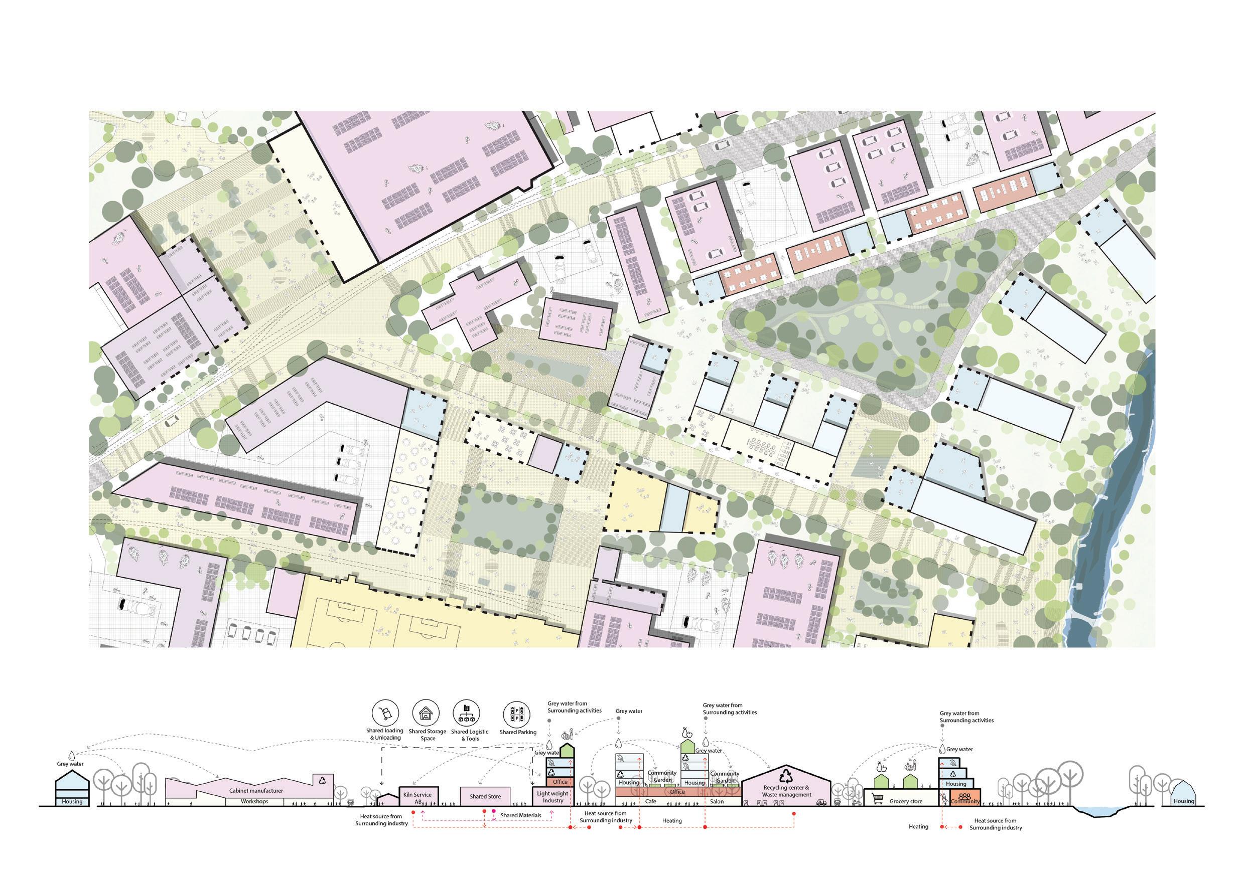 In these project we tried to applythe idea of industrial urbanism where typologies residential and other programmes can co-exist and get benefited from each other. Gävle is a small city in the north of stockholm and the city has lots of industrial area in the centre of the main city. Now they are planning to shift thouse industrial area and create new urban development. Our proposal takes a different approach, instead of replacing the whole residential area we proposed industrial urbanism. Where industry, residence and other mixed use function can coexist with each other. The project also proposed different level of integration and the green blue infrastructure and public life act as a binding agent to this new industrial urbanism.