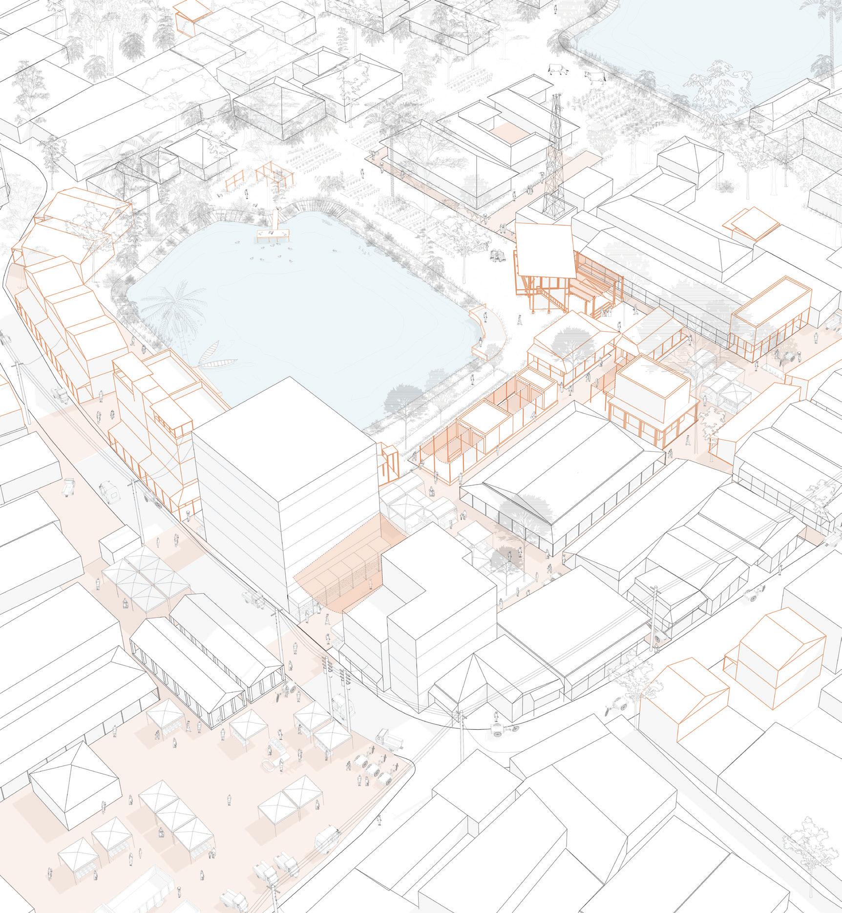 To ensure community engagement, we organized a public participation program and a Minecraft workshop to understand the specific needs and aspirations of the residents. One key intervention involved relocating the existing wet market (Bazar) from the front of the playground to the side, significantly enhancing connectivity and visibility. Preserving and enhancing the site’s greenery was a key priority. Existing trees have been retained, and additional trees have been planted to create a more inviting and sustainable environment.