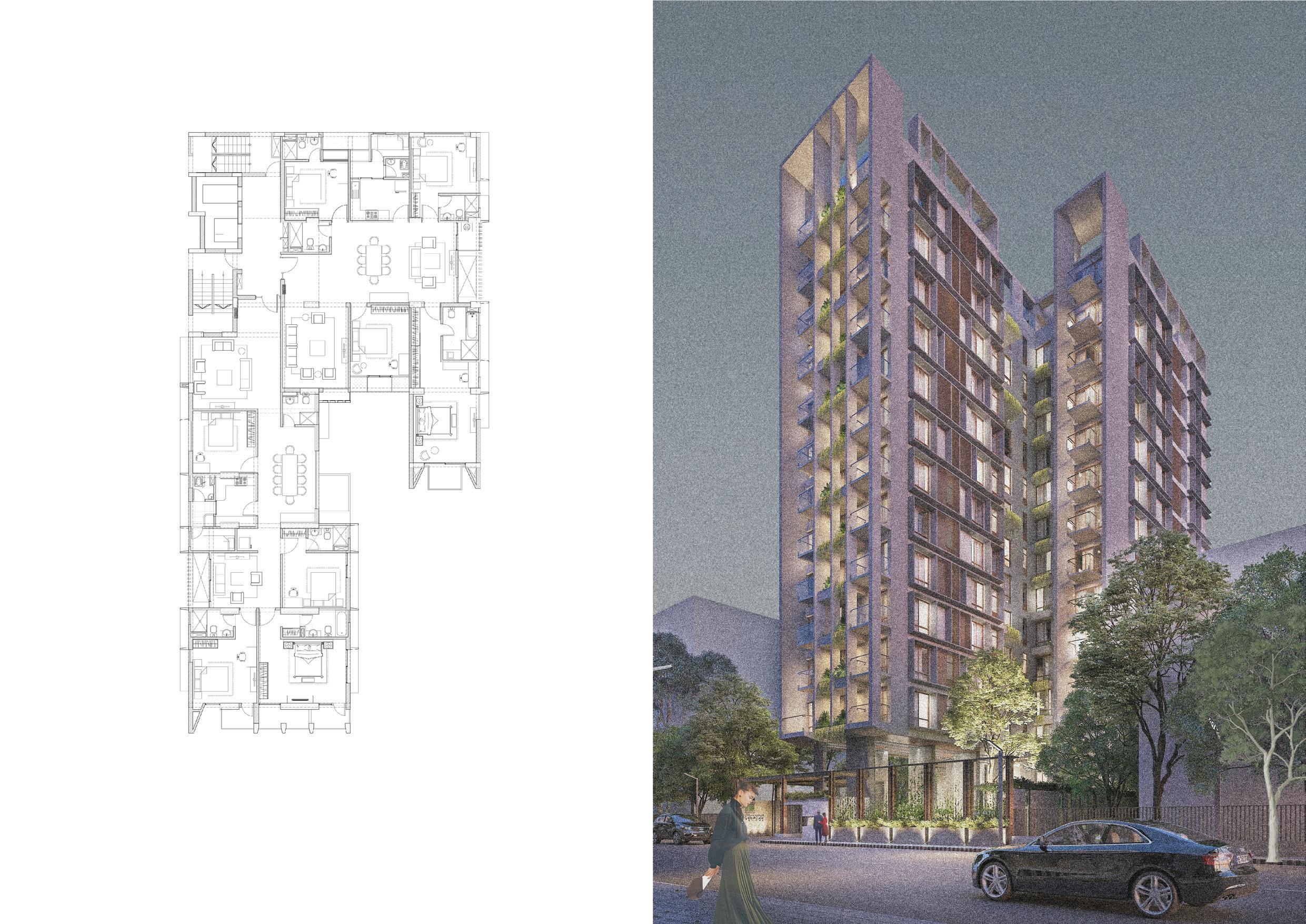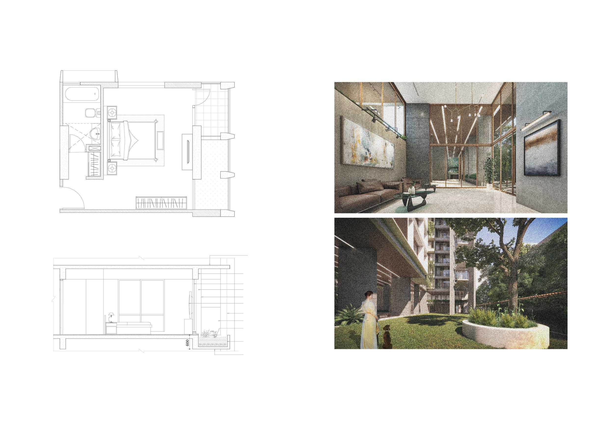 The design concept emphasizes creating a sanctuary within the bustling cityscape. It seeks to harmonize the built environment with the surrounding natural landscape, providing residents with a serene and tranquil living space. The aim is to foster a sense of unity and balance, offering a harmonious coexistence between urban life and nature.