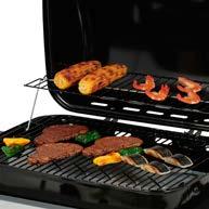 • Large horizontal grilling/smoking chamber with porcelaincoated steel cooking grates