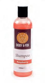 Raspberry extract o ers deep cleaning results with a fresh fruity scent. The shampoo removes odour and dirt to leave a healthy, shiny glow. Suitable for all coat types.