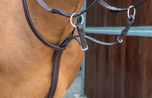 Cut back under the chin to avoid unnecessary pressure. A rubber base with a hole in the bottom allows grass to enter. Anti-chafe padding provides a comfortable fit. Field safe fastenings and D-ring.