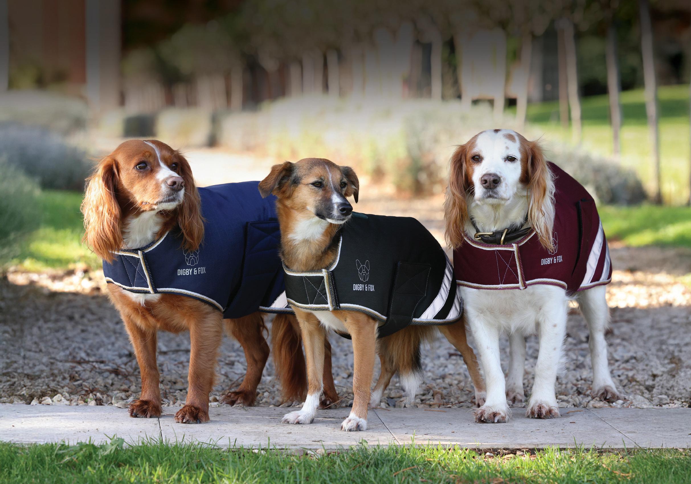 Quintessential style for the discerning country lover. The wax dog coats ward off showers and offer lightweight warmth.