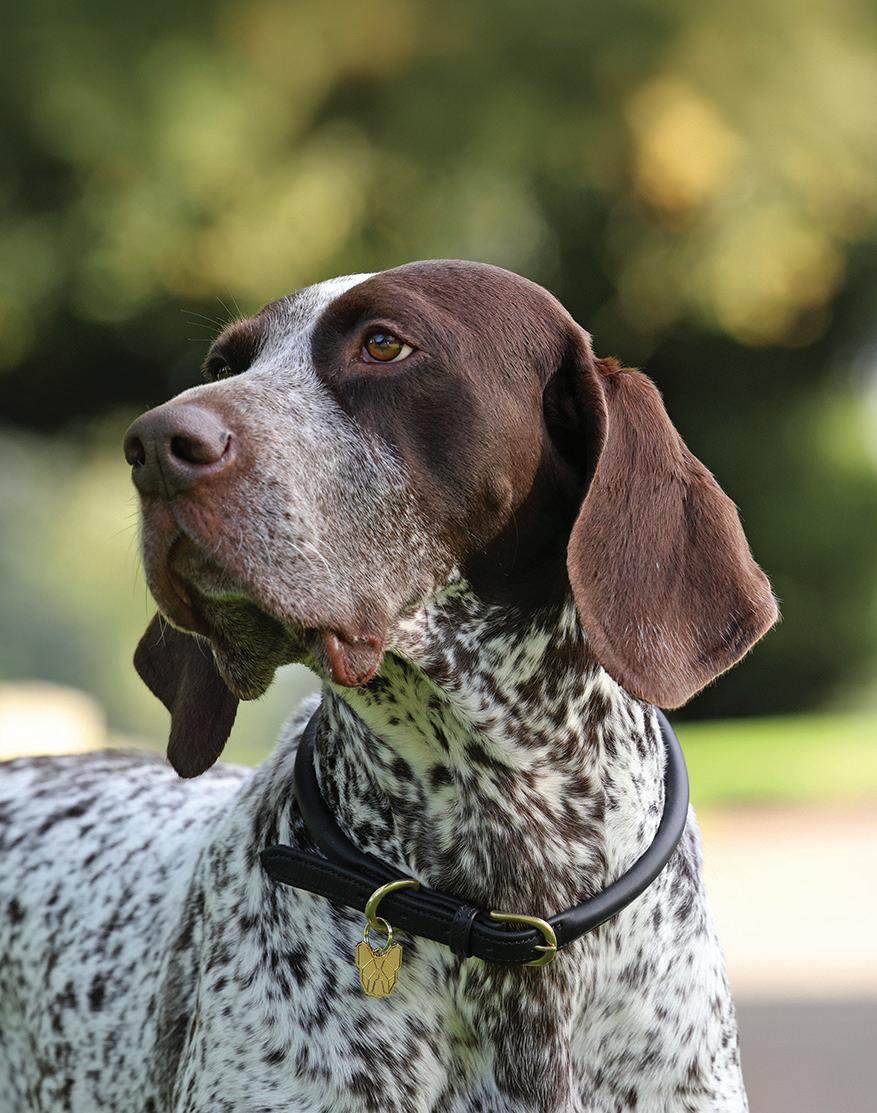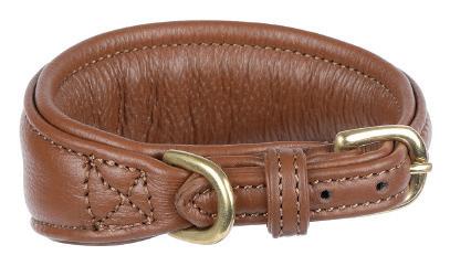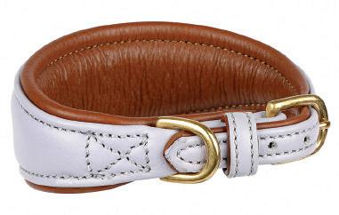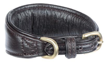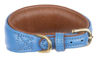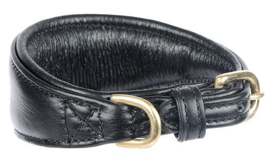 Specially shaped to flatter sighthounds, the tapered shape sits neatly and prevents the collar from slipping over the head. Finished with leather trims and brass fittings for a quality feel.
