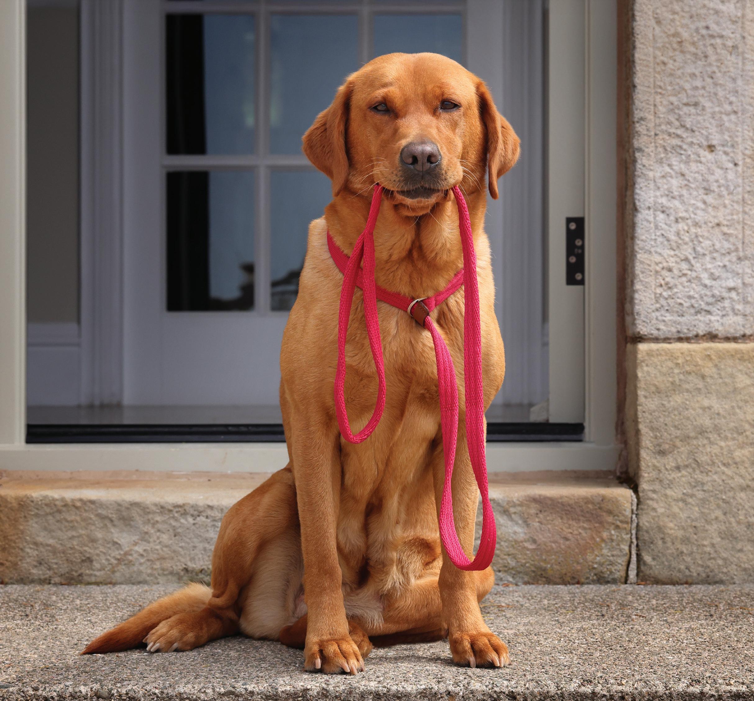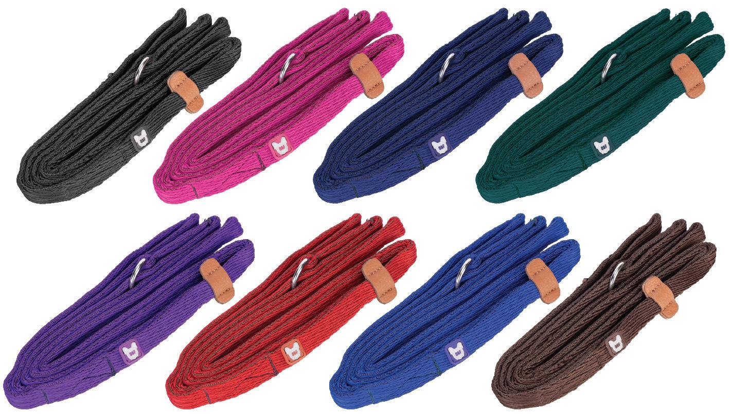 Features a leather slider to prevent the lead from slipping off and allows adjustable tension. Available in 1.5cm and 2cm wide webbing.