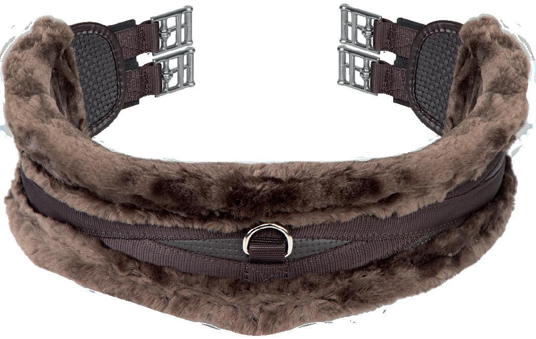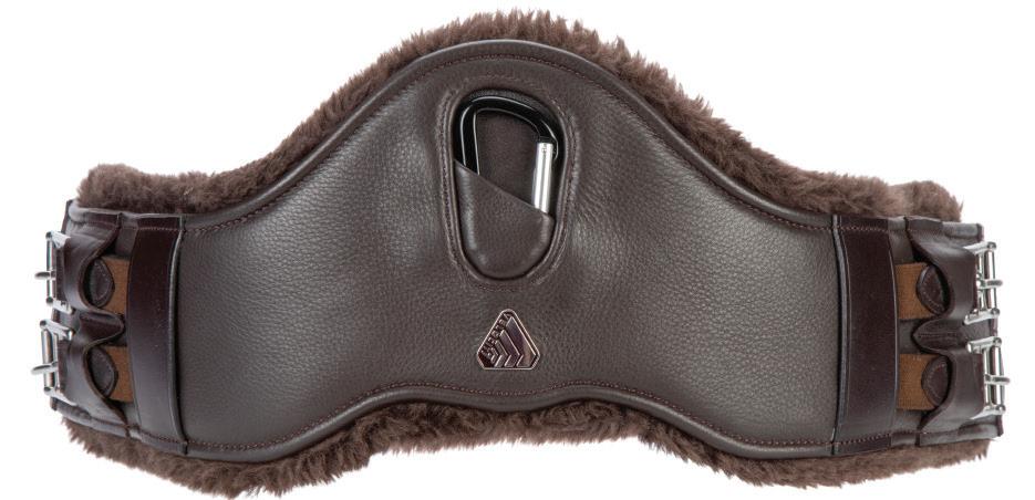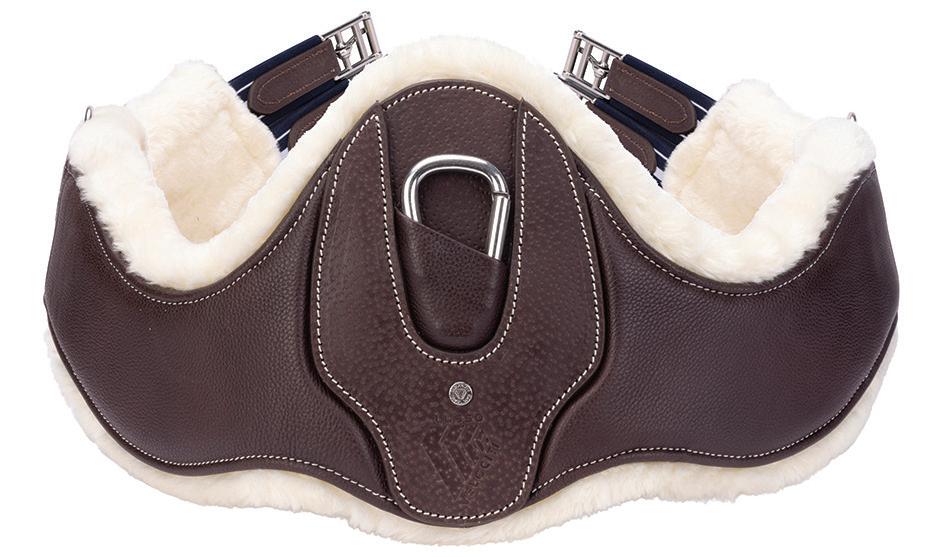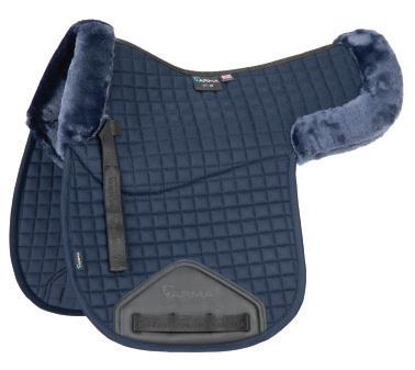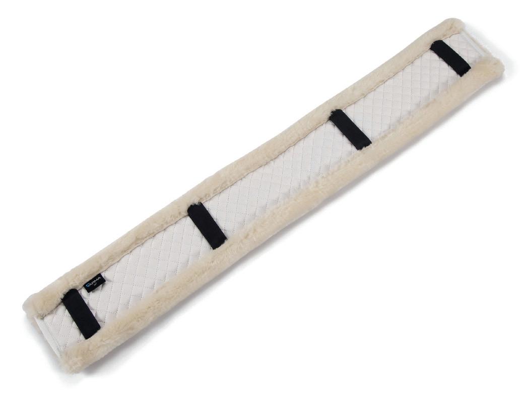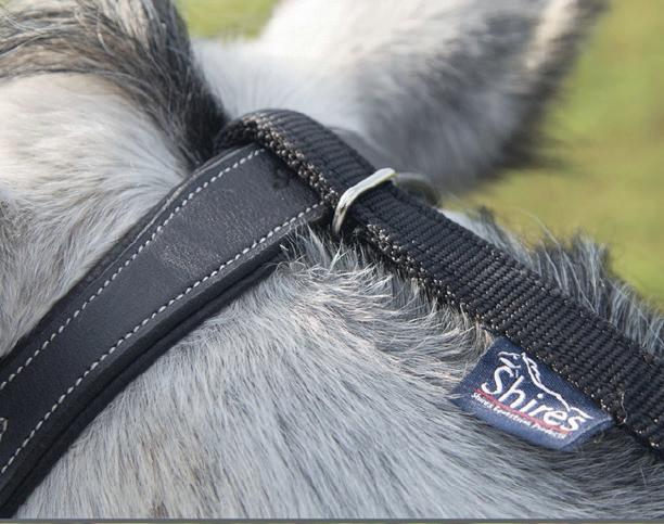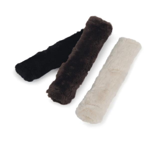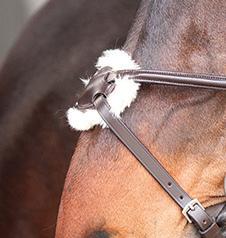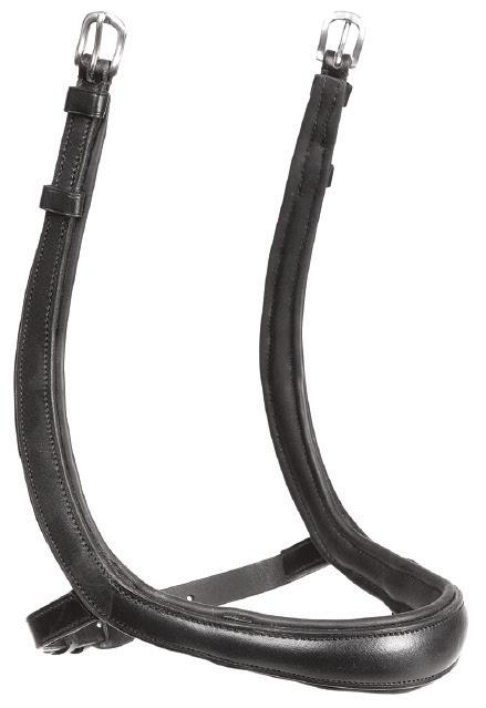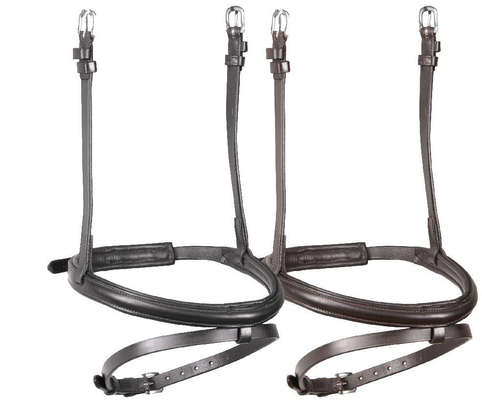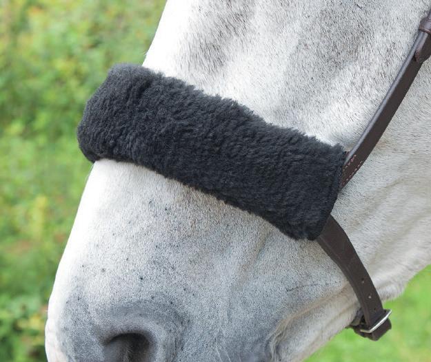 Padding at the noseband relieved pressure at sensitive areas, a genuine sheepskin pad is removable for washing for freshness. The adjustable raised noseband fastens with a roller buckle.