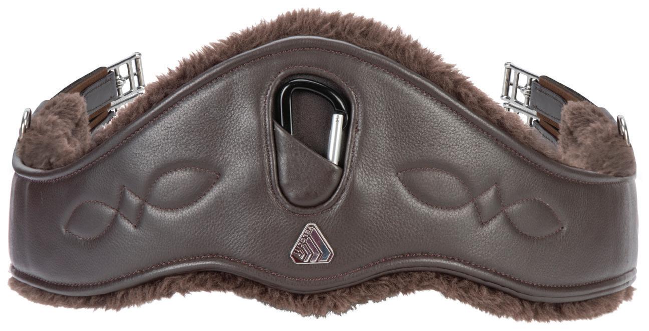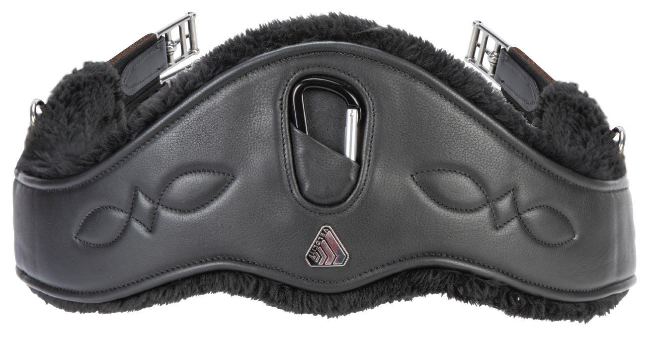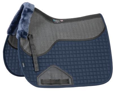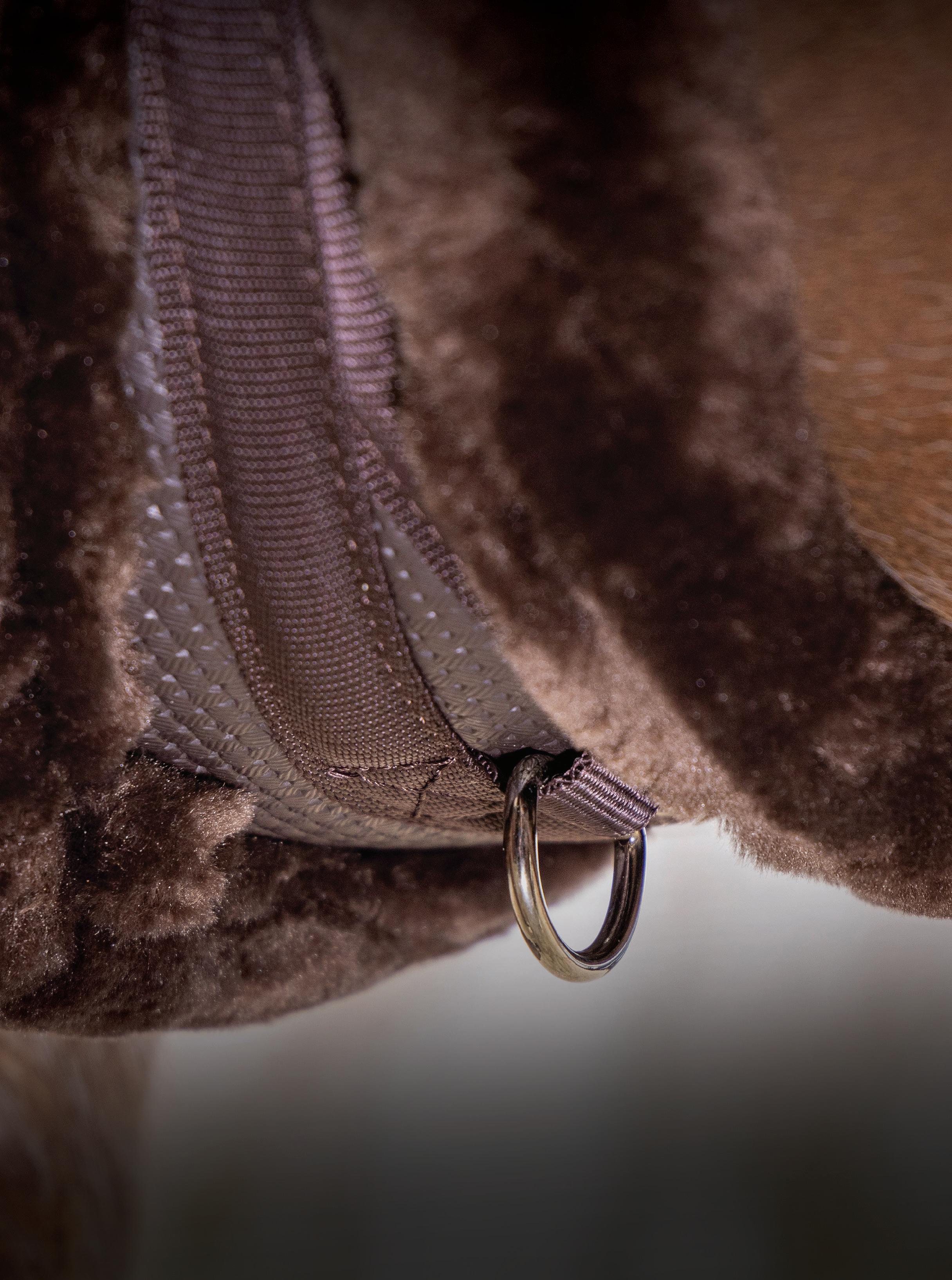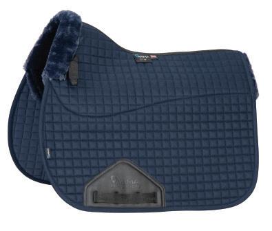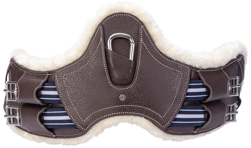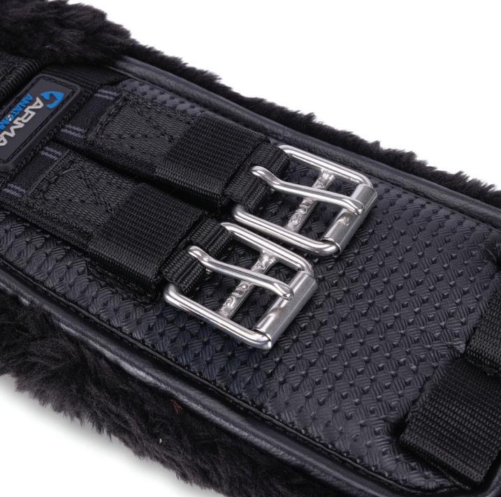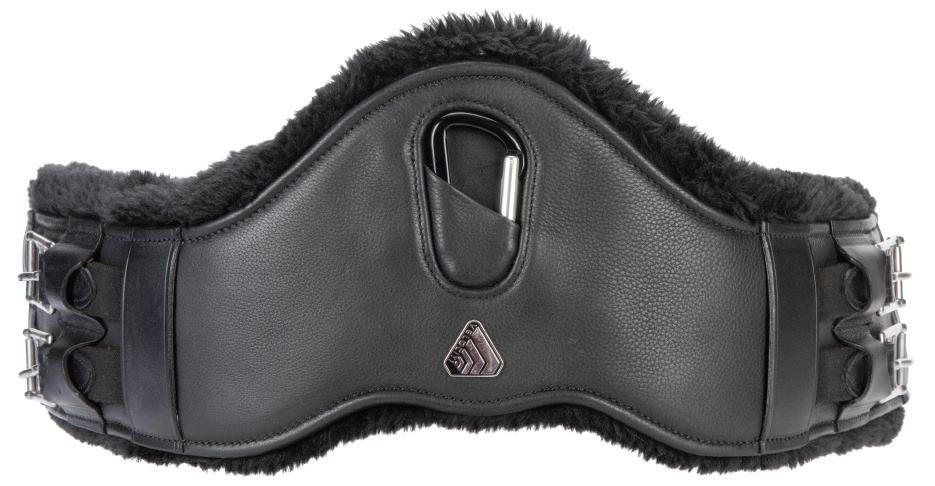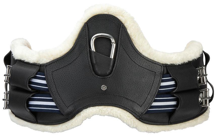 Padding at the noseband relieved pressure at sensitive areas, a genuine sheepskin pad is removable for washing for freshness. The adjustable raised noseband fastens with a roller buckle.