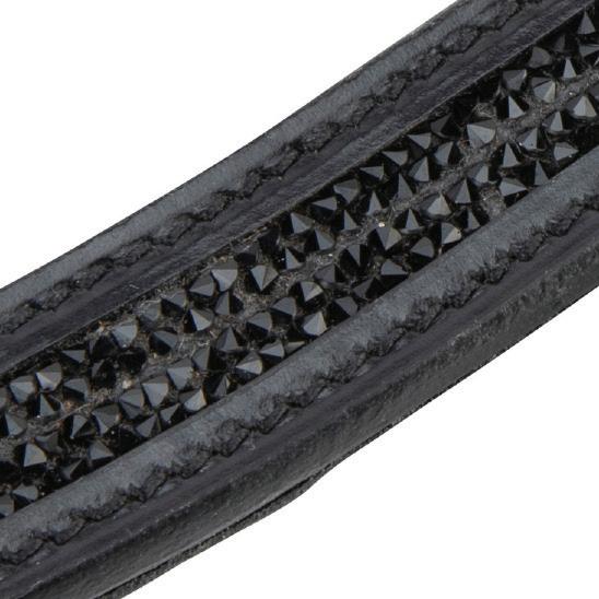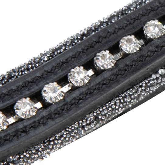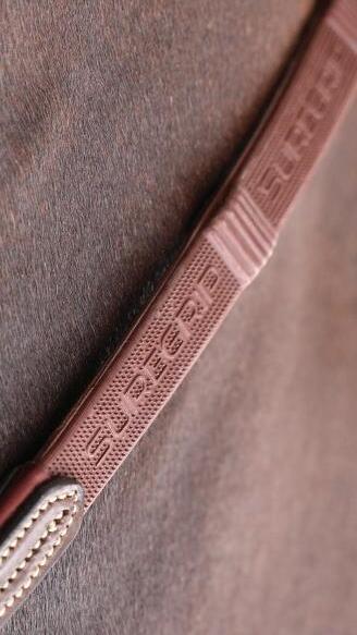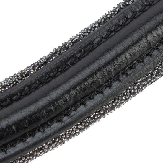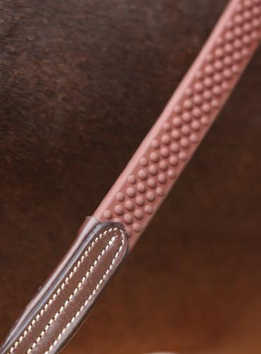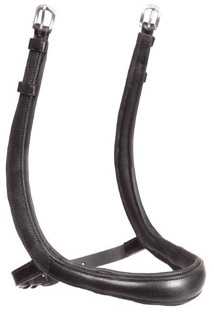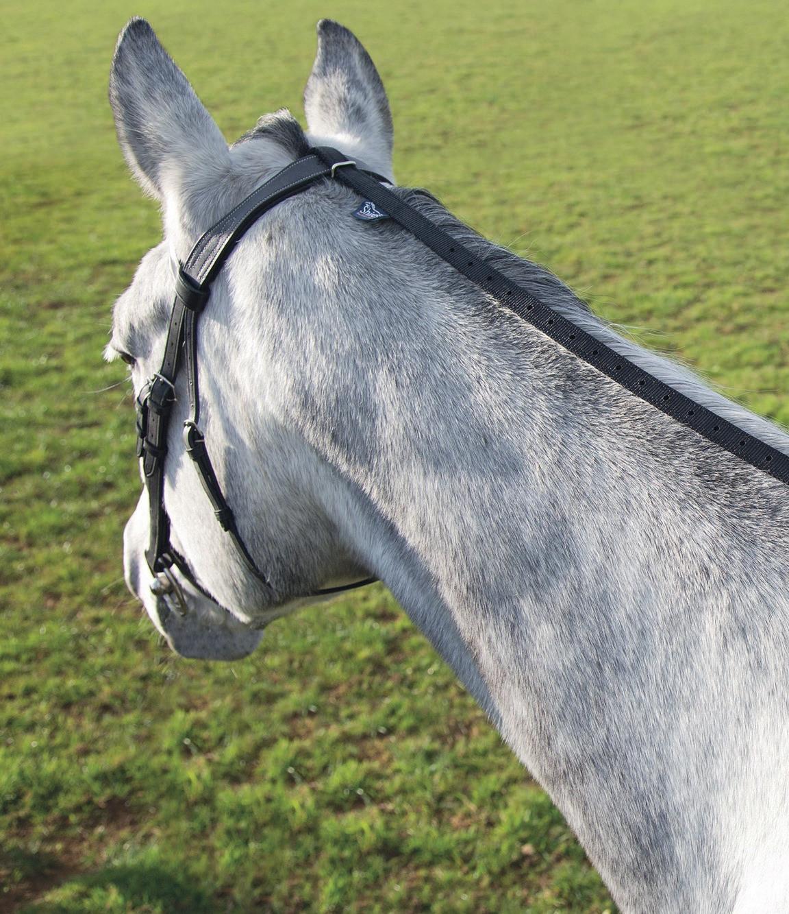 A deep, padded noseband is cut back at the sides to relieve pressure in sensitive areas, the unique noseband design positions the flash for ergonomic advantage and a sophisticated look. The adjustable noseband fastens with a roller buckle and a cushioned pad guards against pinching.