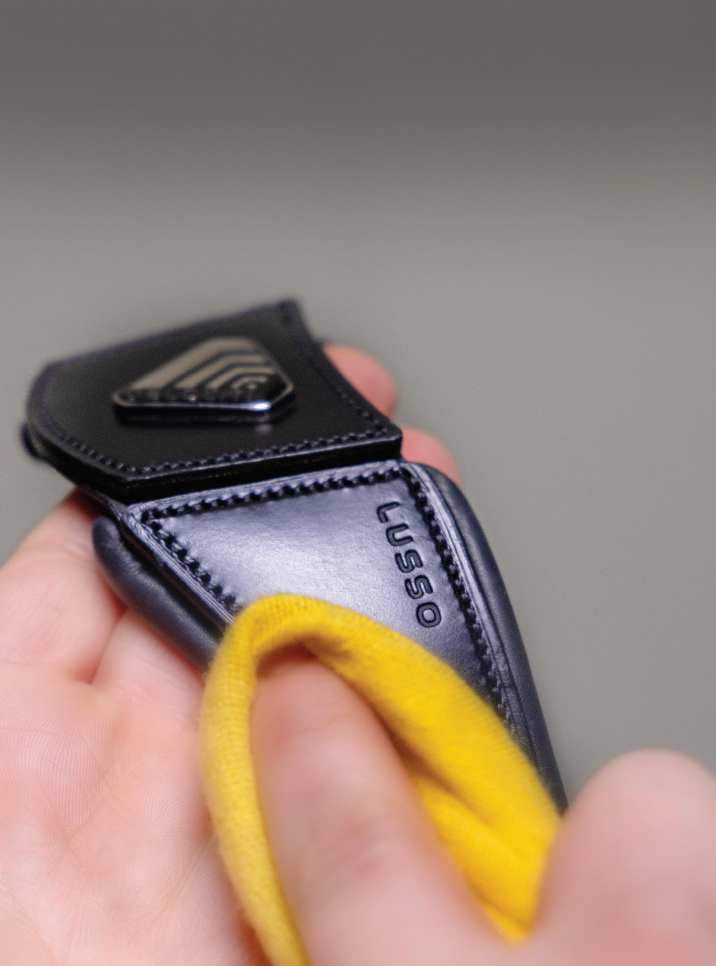 Leather must always be left to dry naturally at room temperature. Regularly check leather and stitching for signs of stress and replace if necessary. Do not use excessive amounts of oil - this can be as damaging as using none at all.
