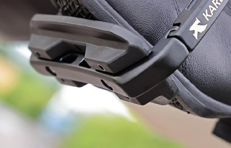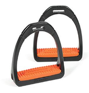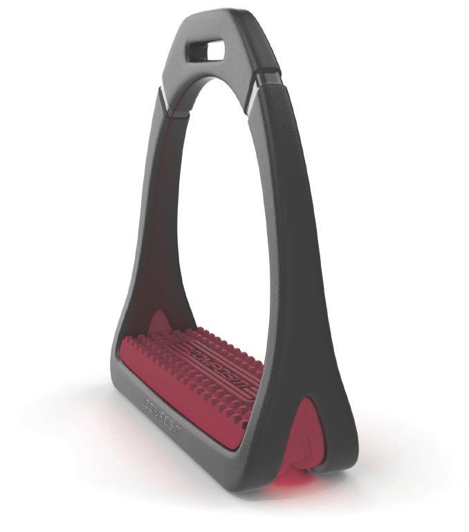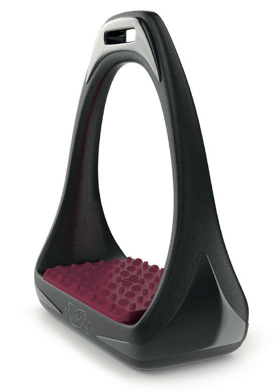 With glass-fibre reinforcement, the swivel sole of the Compositi REFLEX stirrup is positioned on a shockabsorbent layer to relieve tension from knees and joints. The slender profile has been designed for quick foot release in an emergency. High resistance to shocks and damp, even at low temperatures.