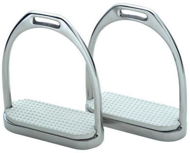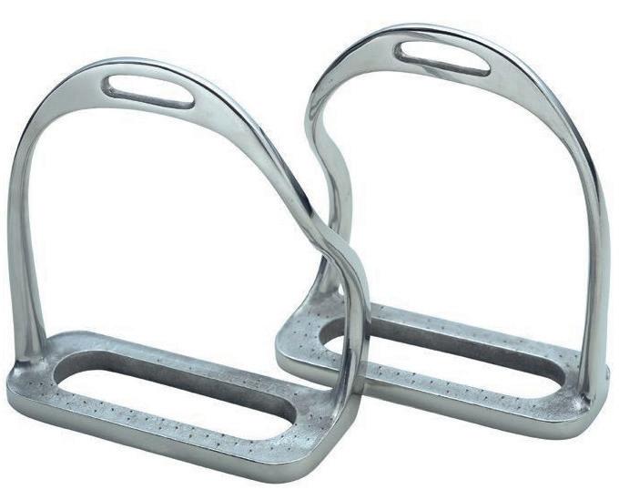 These bent leg stirrup irons have been designed to help prevent the foot becoming caught in the stirrup in the event of a fall.