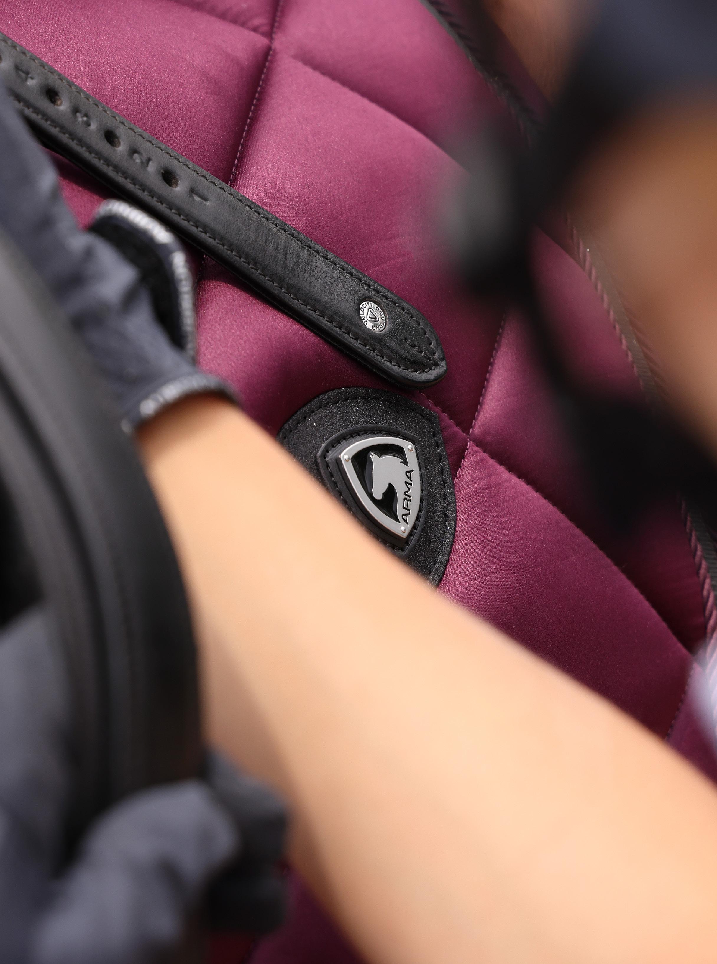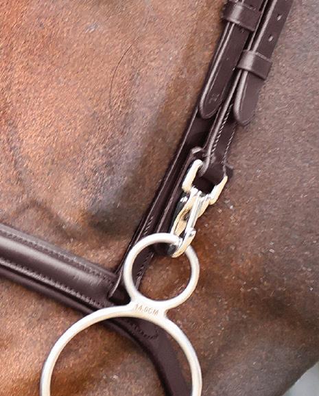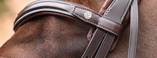 Pressure relieving three part form fitting crown which has an airflow poll gap and cut away freedom-ear profile. Soft leather is combined with generous, anti-shock leather lining at the headpiece for enhanced cushioning. Elegantly angled throatlash strap.