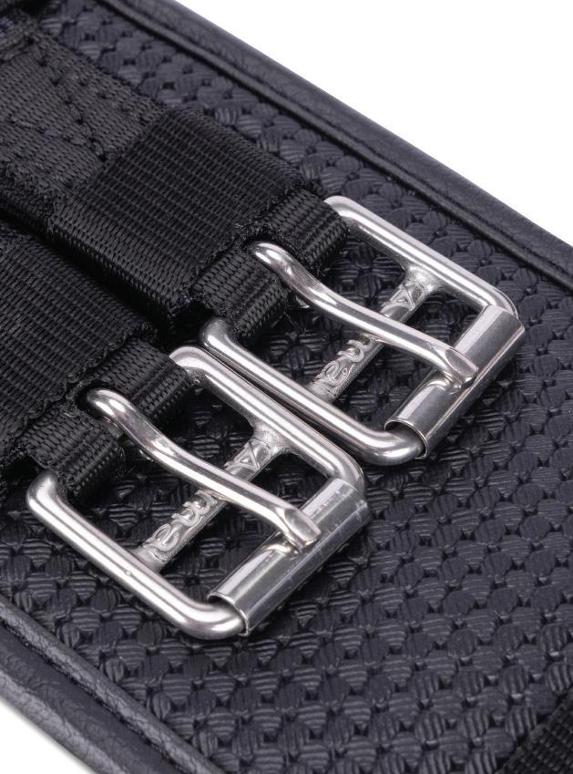 Adjustable at both sides of the neck strap and at all other points of attachment. Offering enhanced comfort, the neck strap and centre chest section are lined with soft cushioning leather.