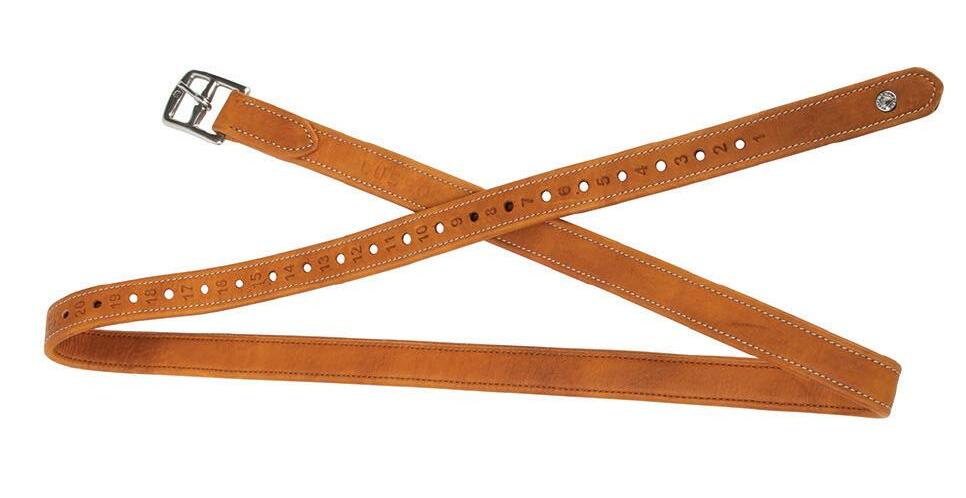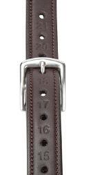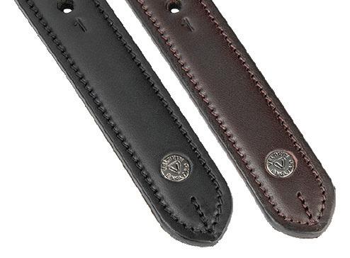 Leather is nylon reinforced at the buckle for improved strength and durability. Stainless steel buckles.