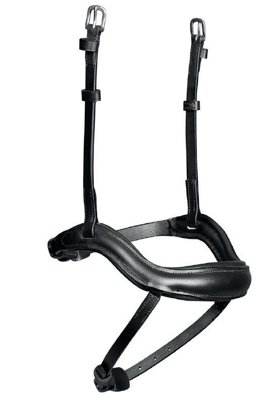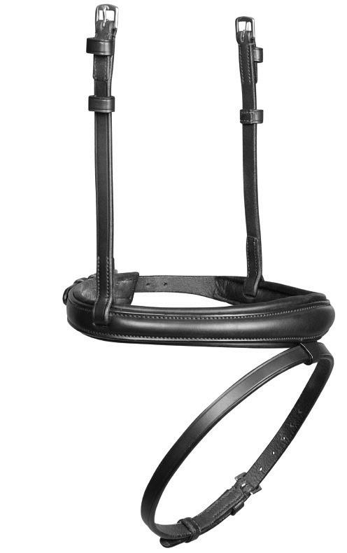Creates a less restricted feeling for the horse, the wider surface area relieving pressure in sensitive areas. The adjustable noseband fastens with a roller buckle, a cushioned pad guards against pinching.