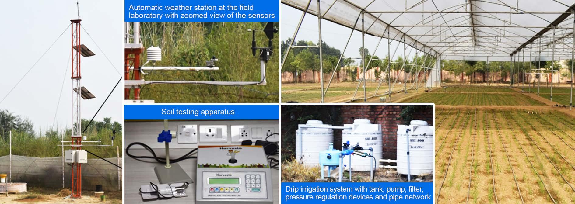 The Government of India and the university co-funded the laboratory to serve as a state-ofthe-art research facility. It has an extensive crop experimentation facility equipped with a drip irrigation system and research equipment for monitoring crops and soil parameters.