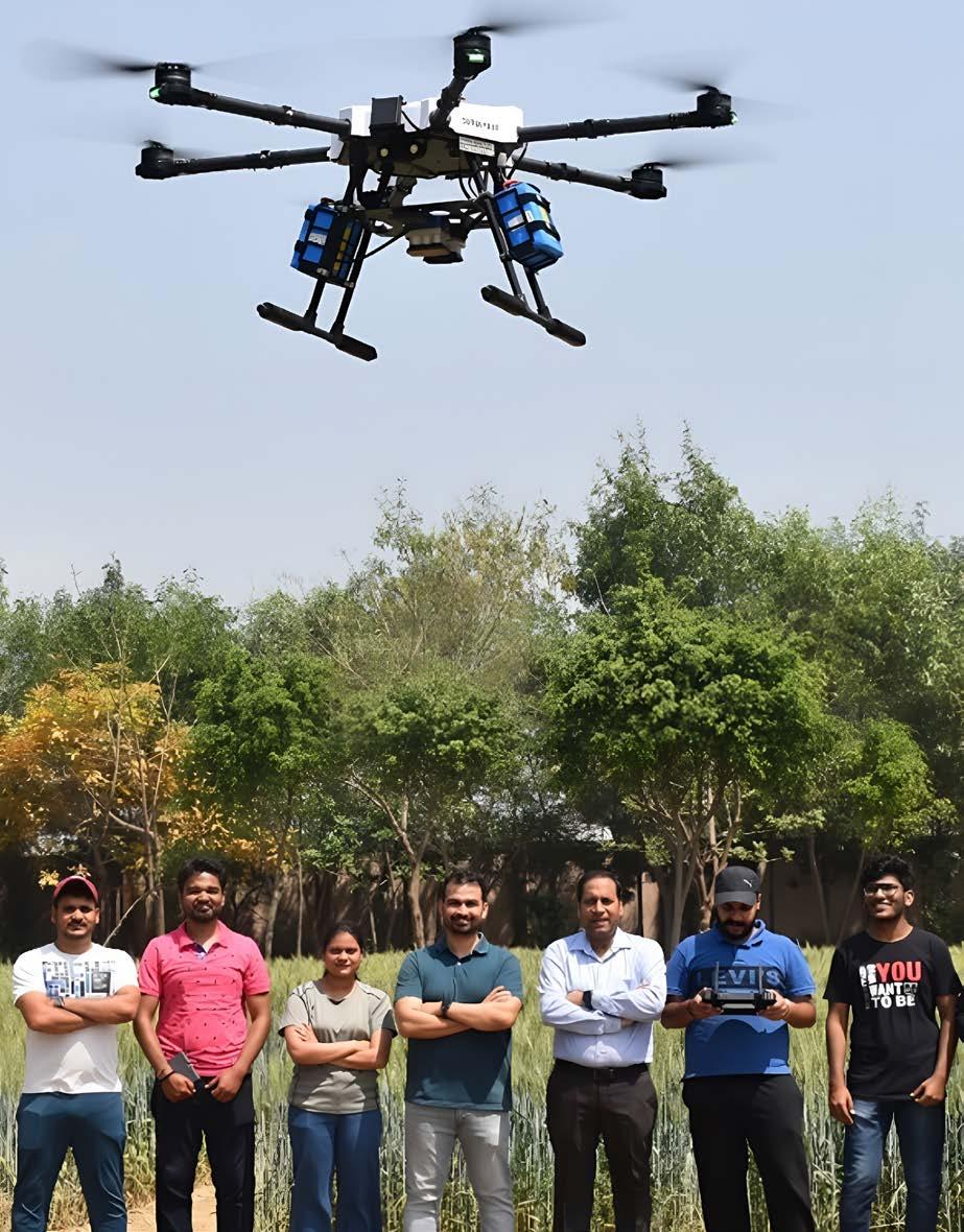 Besides using the European Space Agency’s Sentinel 1 and 2 and NASA’s Landsat satellites to study soil moisture and crop health, the research team uses their own Surveybot drone. The high-end drone, with a payload capacity of 10 kg, is equipped with thermal, multispectral, and hyperspectral cameras. The data collected is analyzed through Pix4D, a photogrammetry and drone mapping software, to provide inputs to monitor parameters like water requirement and crop health. The massive data sets are analyzed using machine learning tools to observe crop water requirements and predict crop yield.