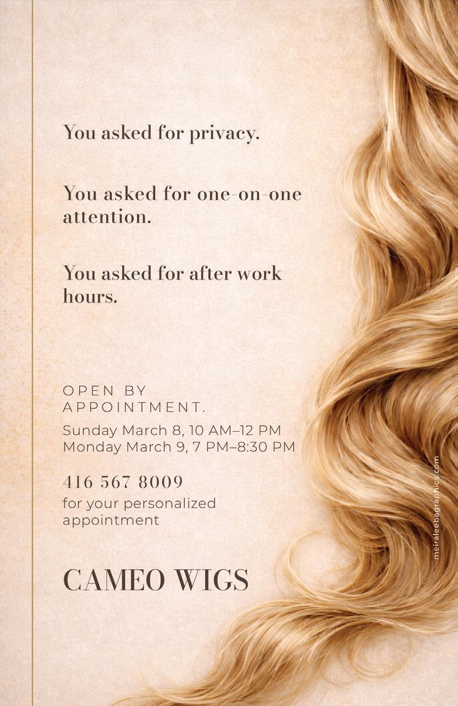 Shaitel Gemacher - have a wig not right for you? Let someone else enjoy it! Call Shully Feigenbaum 416-785-5133.