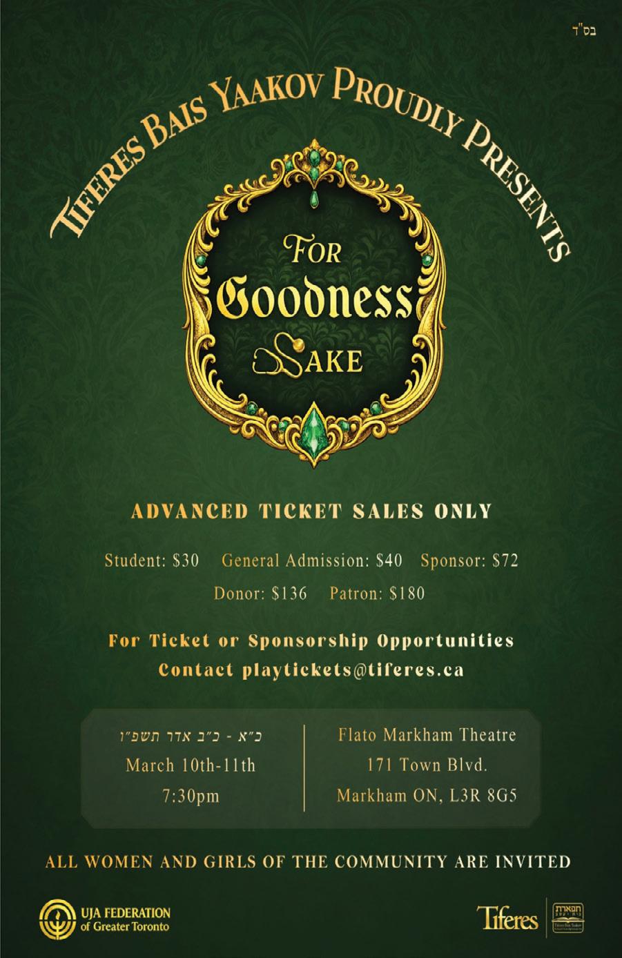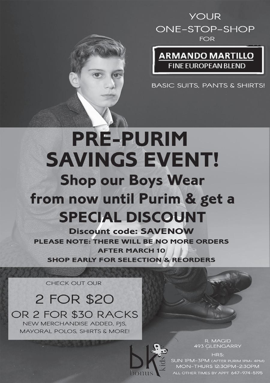 NEW PURIM COSTUME GEMACH with a variety of costumes for all ages. Lʼilui nishmas Shimon Yehuda ben Chaim Yeshaya Shlomo a”h. Please call/text Esther for appt. 416-455-2391.