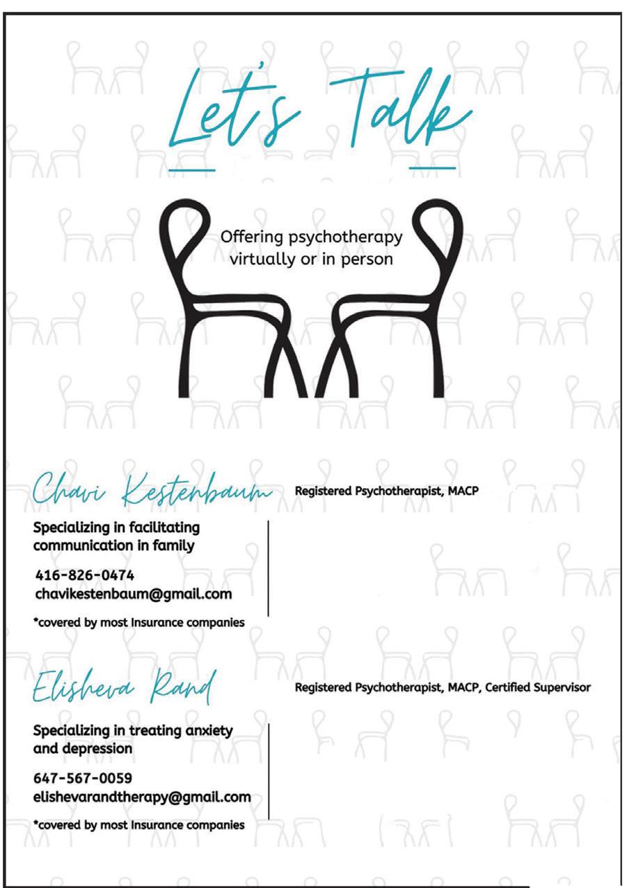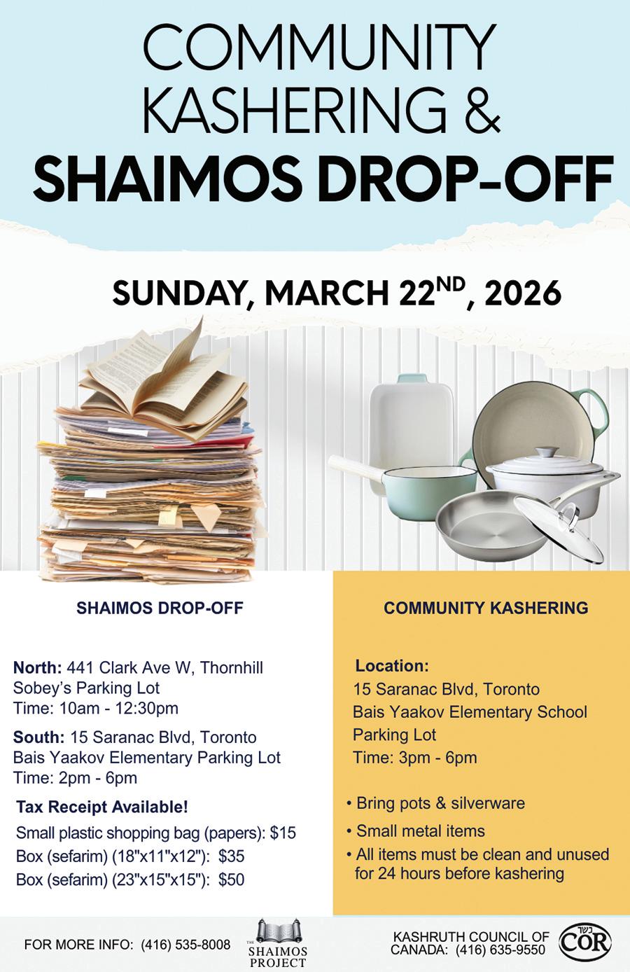 Helping to get information for Hebrew schools, Hachnosas Orchim, kosher food in the Jewish community. Call Esther Lipovenko 437-221-6585