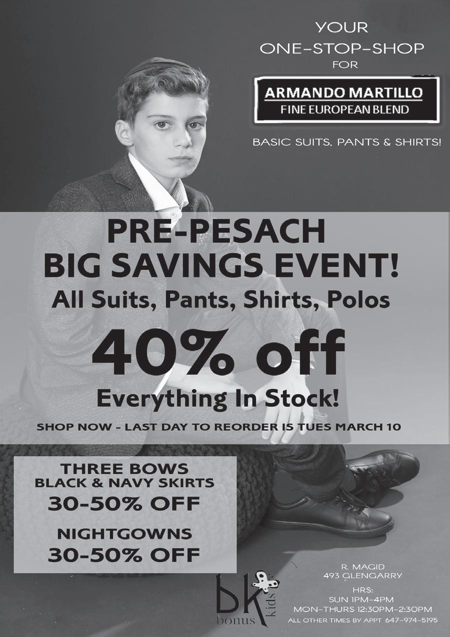 NEW PURIM COSTUME GEMACH with a variety of costumes for all ages. Lʼilui nishmas Shimon Yehuda ben Chaim Yeshaya Shlomo a”h. Please call/text Esther for appt. 416-455-2391.