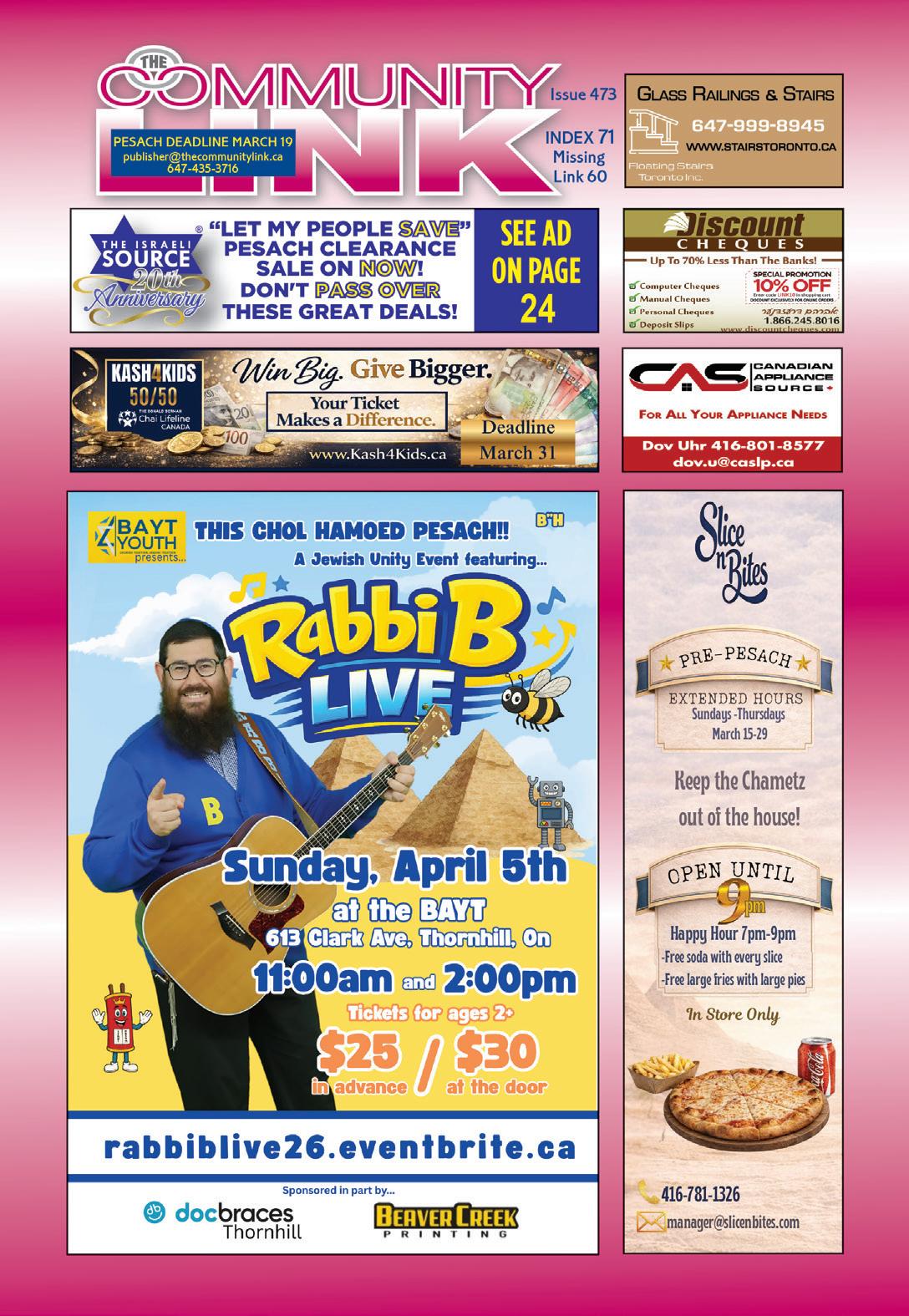 • Classified ads can be emailed to publisher@thecommunitylink.ca or Whatsapp to 647-435-3716