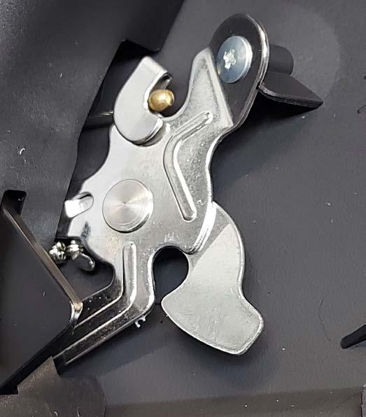 Eine zweite, stabile Rasterposition erlaubt neben der empfohlenen Nutzung mit geschlossener Kinnklappe auch die Nutzung des Helmes mit geöffneter, arretierter Kinnklappe. Eine 360° Pivot-Locking Verschlussmechanik aus Edelstahl verriegelt das Kinnteil sicher und zuverlässig in geschlossener Position.