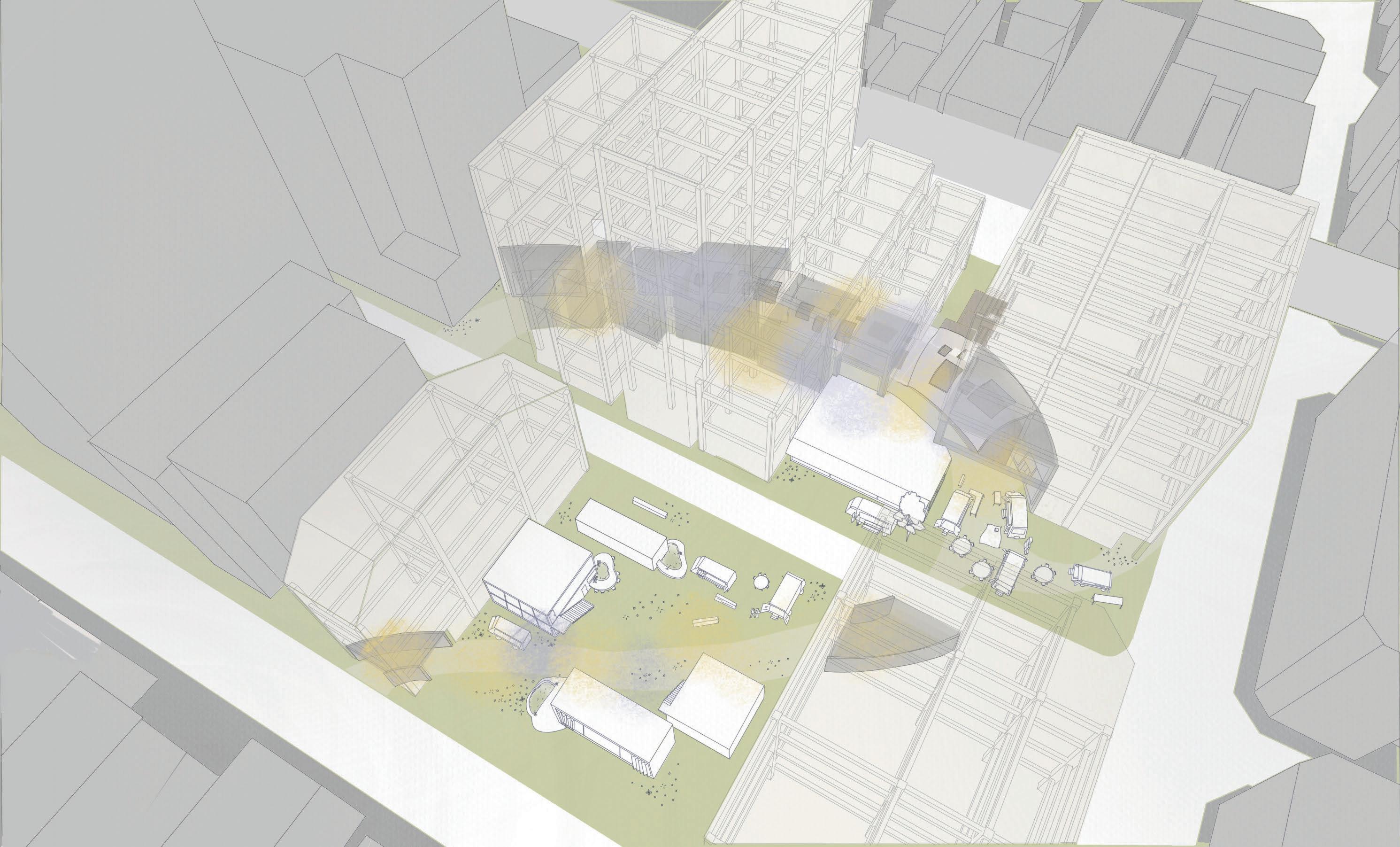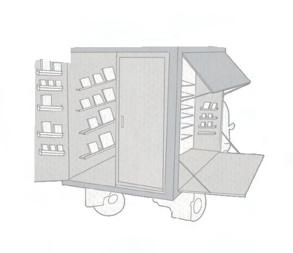 新しい要素を用いコミュニティ空間を創造する 建築や空間を構成する要素とは異なる「本」 などの新しい媒体やトラックなどの新しい手 段を使ったシステムを構築し、 より豊かでコミュニティの広がるサードプレ イスをつくりだすことを目指し提案する