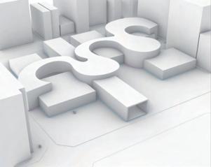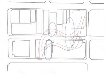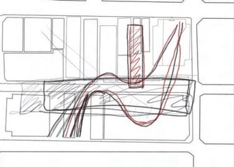 街のなかで立ち寄れる図書 館という構想からスタートさせた 。初案は点在 型の書架を繋げていく図書館の提案。