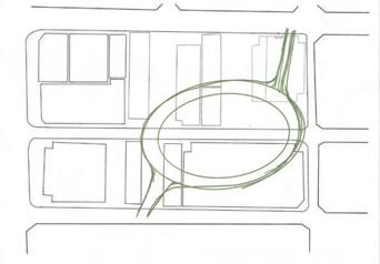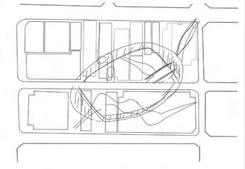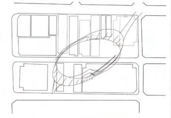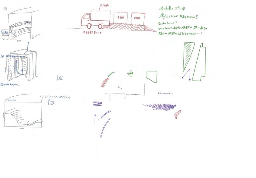 既存の街 の中 に 図書 館の 「道 」を作り出すことにした 。初 案と逆転の発想になる。また、ここでトラック図書 館を 採用 。