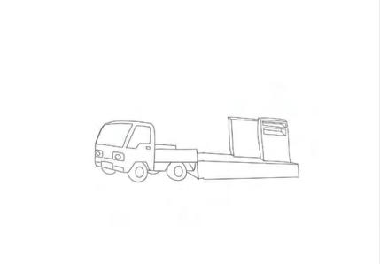 書庫を持たない図書館とするための本棚が動かせる図書館。移動図書館から発想を得てトラックと図書館の設計を進める。
