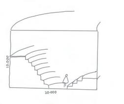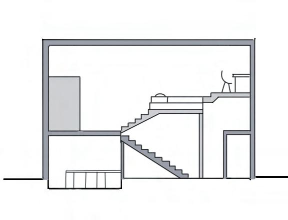敷地の 1300m mの段差を用 い内 外の空間を曖昧にするために円と直線を使 い生 活に豊かさ を 付加価 値とする提案を行った。